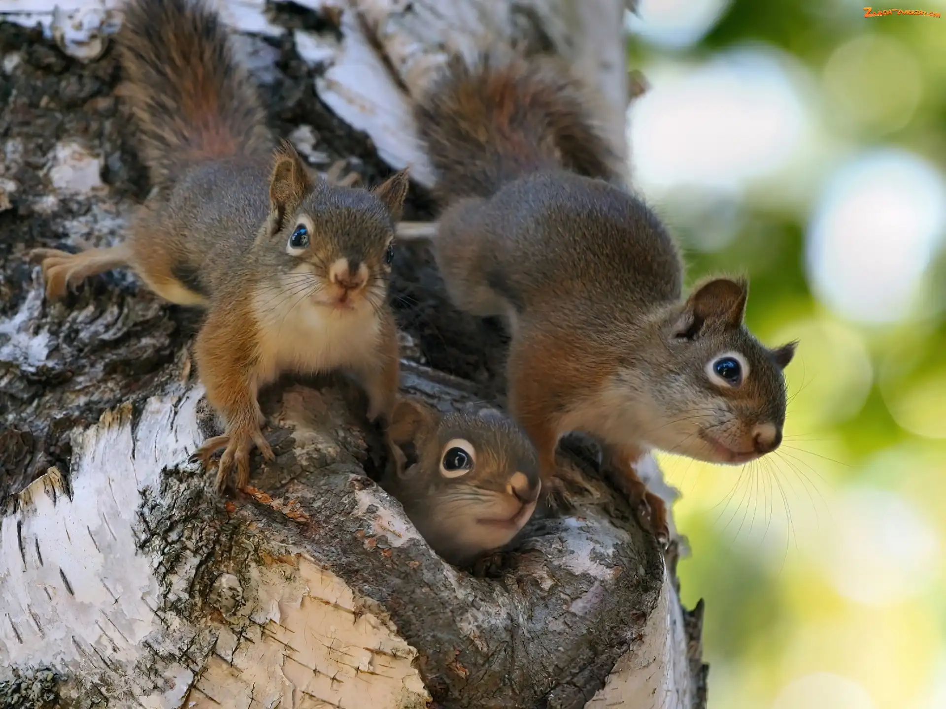 Zdjęcie: Dziupla, Trzy, Wiewiórki