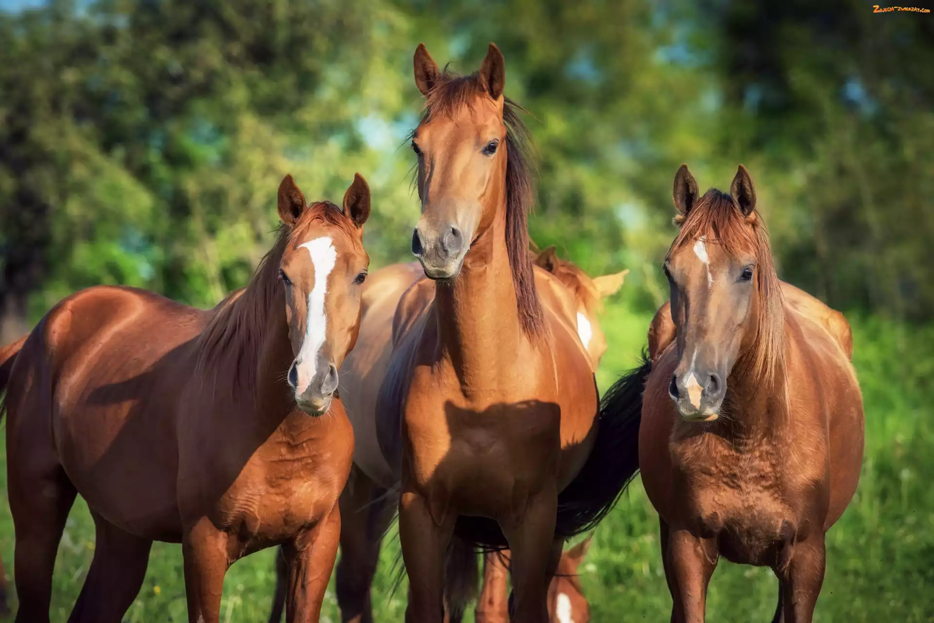 Zdjęcie: Kasztanowate, Trzy, Konie