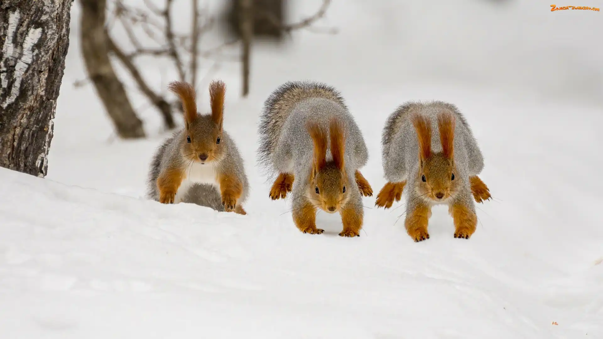 Zdjęcie: Śnieg, Trzy, Wiewiórki