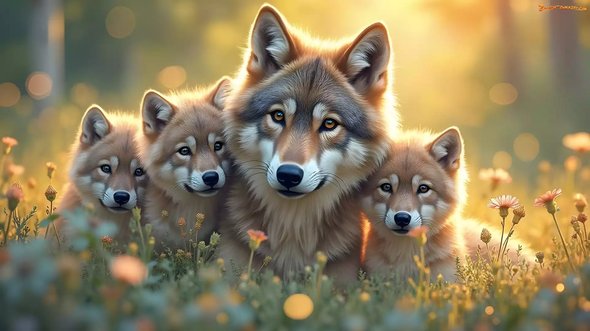 Zdjęcie: Szczenięta, Trzy, Rośliny, Grafika, Wilki