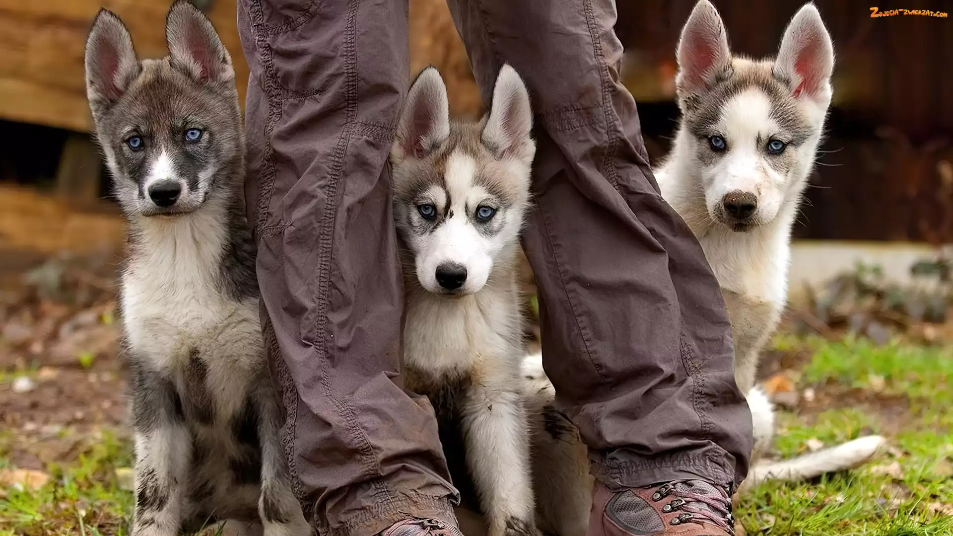 Zdjęcie: Szczeniaki, Trzy, Nogi, Husky