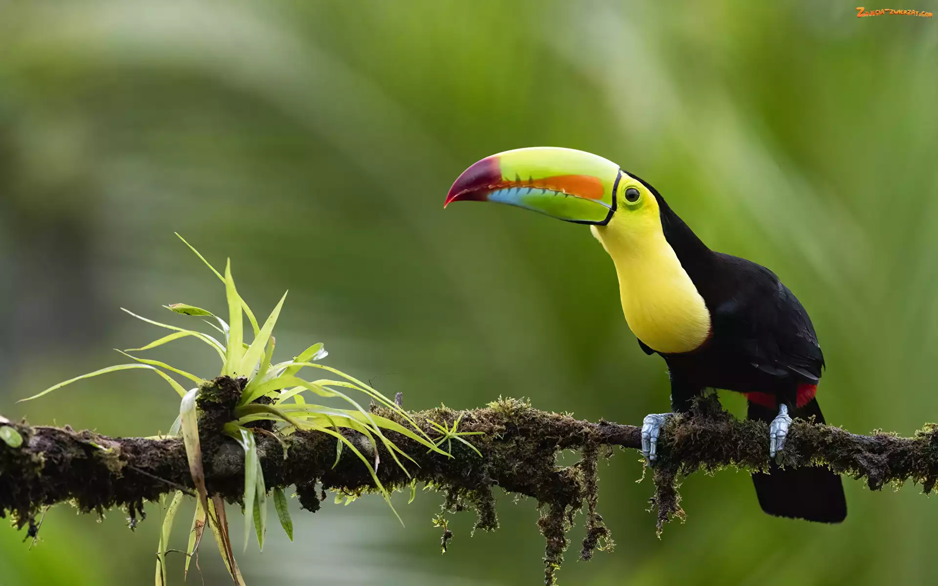 Zdjęcie: Ptak, Tukan tęczodzioby, Zbliżenie, Gałąź