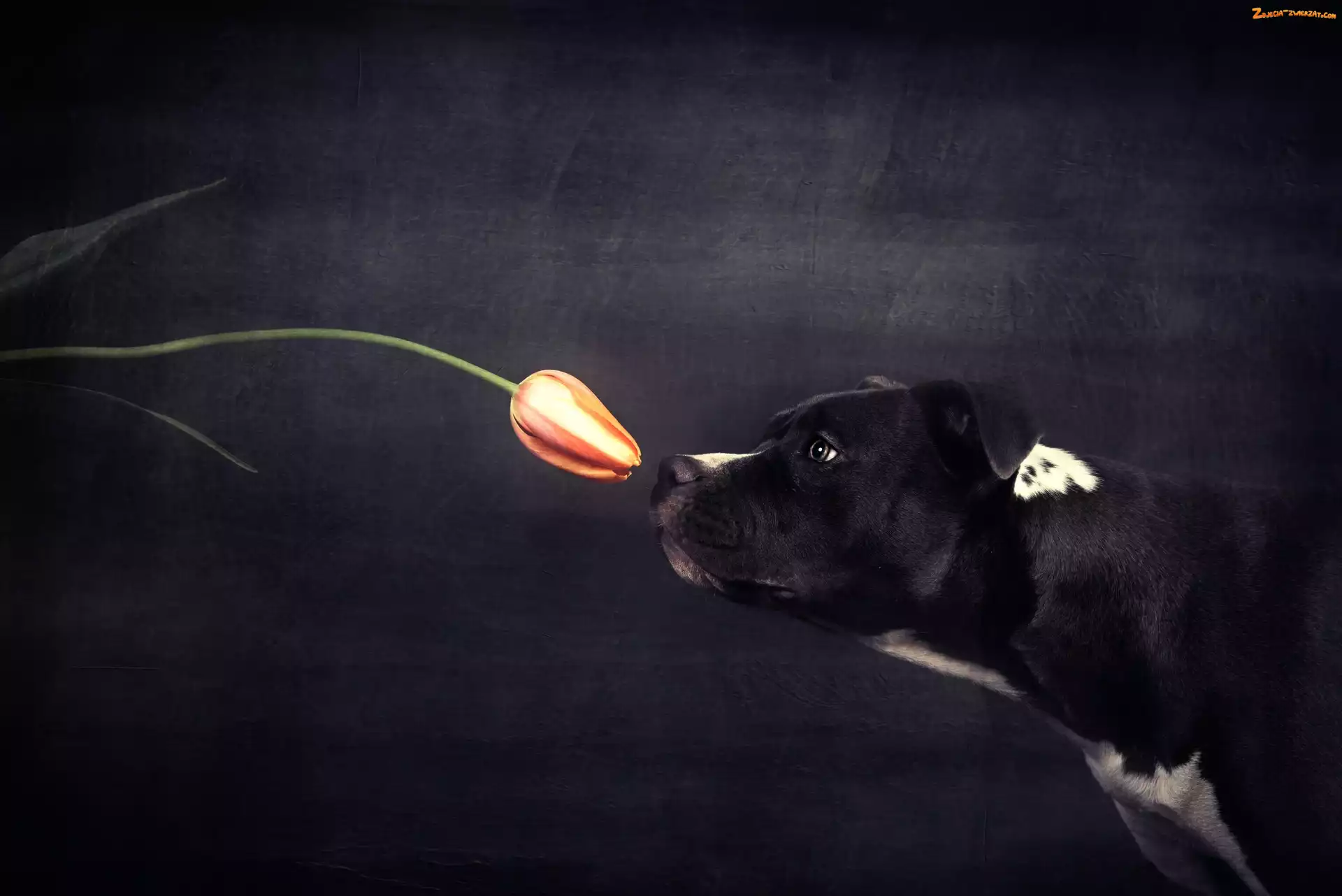 Zdjęcie: Tulipan, Czarno-biały, Pies