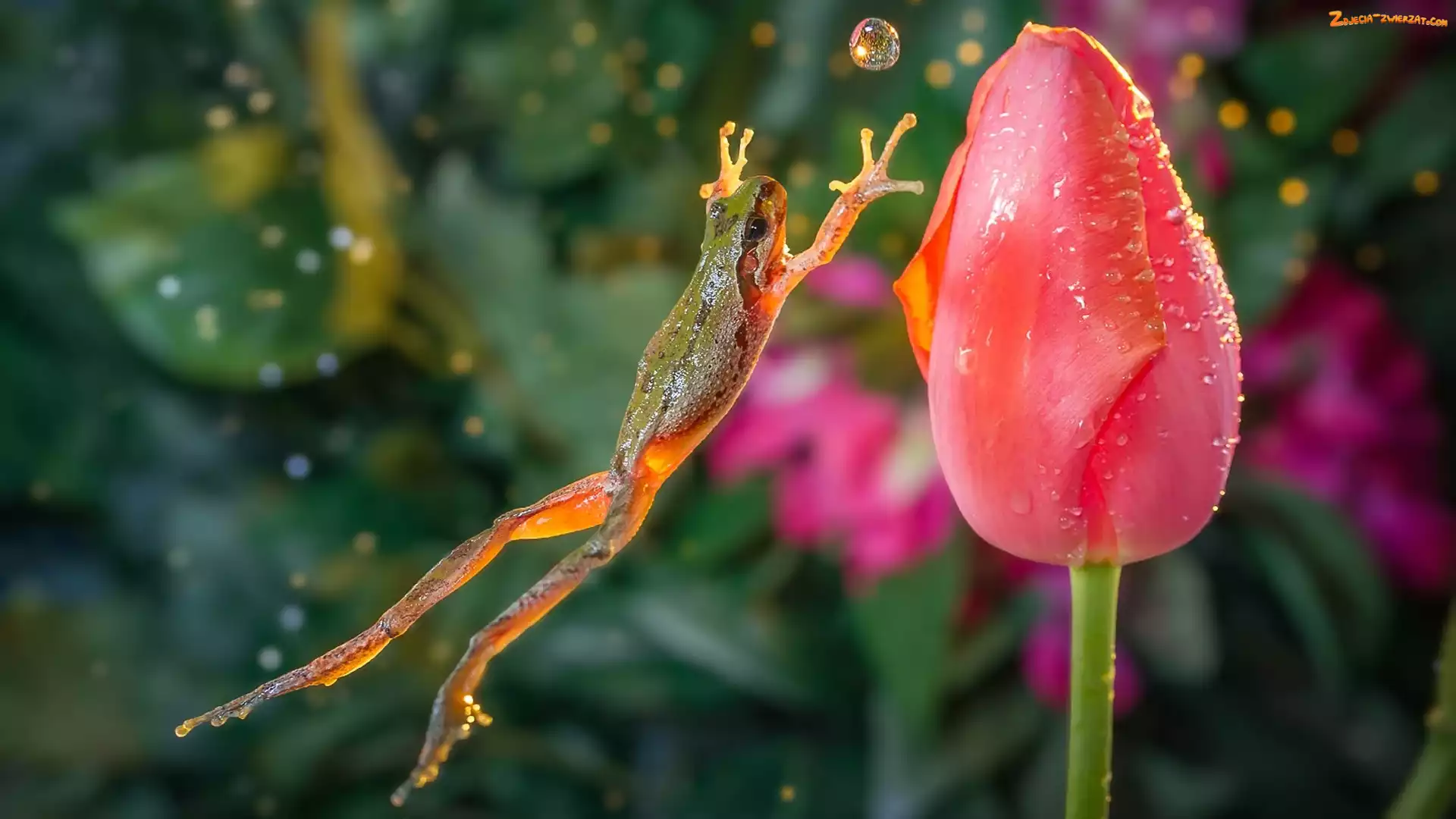 Żaba, Wody, Tulipan, Kropla
