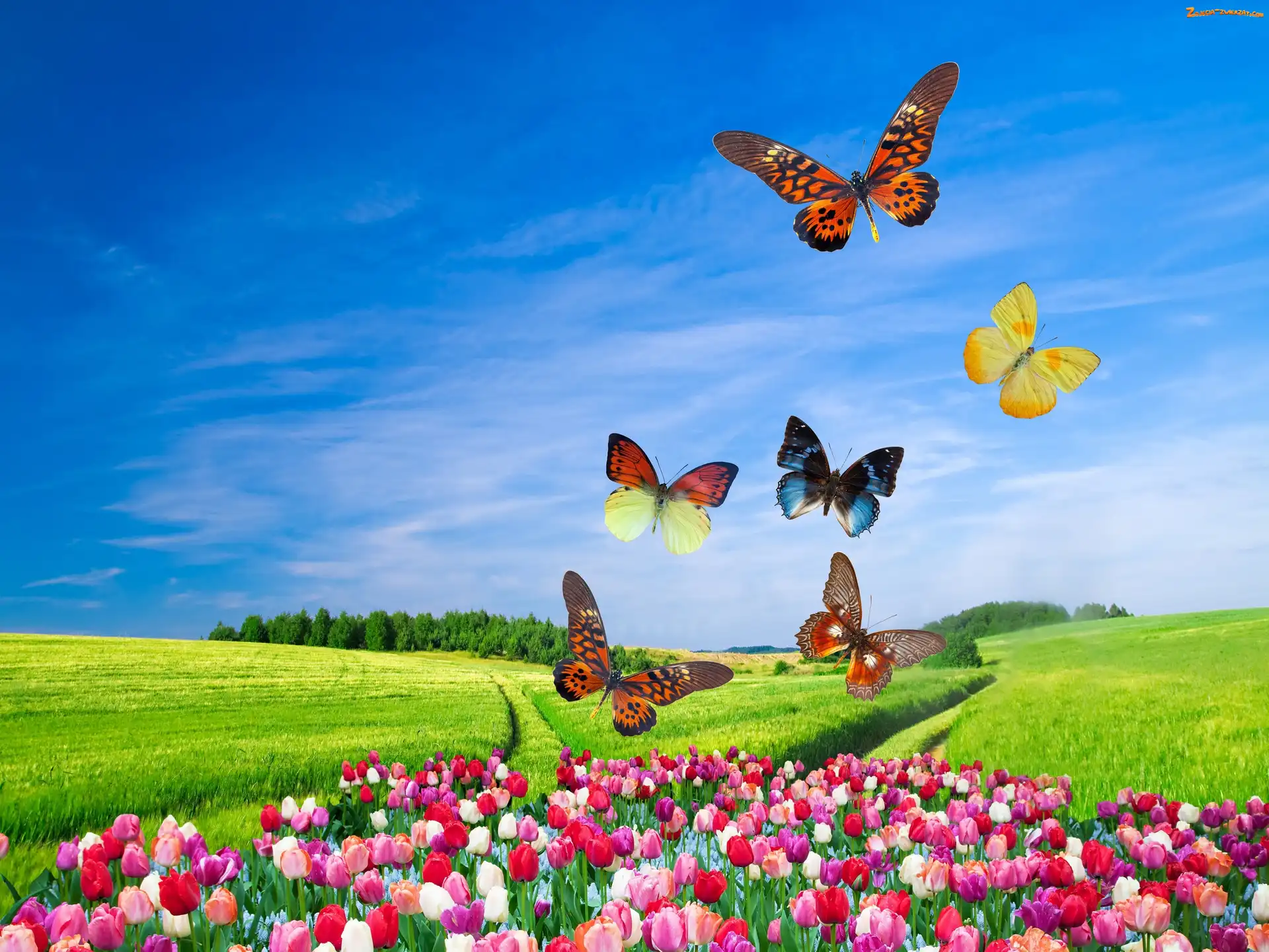 Zdjęcie: Tulipany, 2D, Pole, Motyle