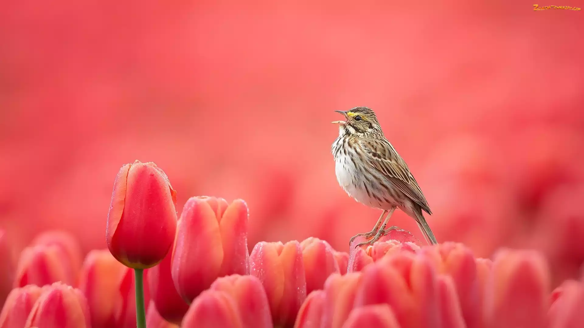 Tulipany, Bagiennik żółtobrewy, Czerwone, Ptak