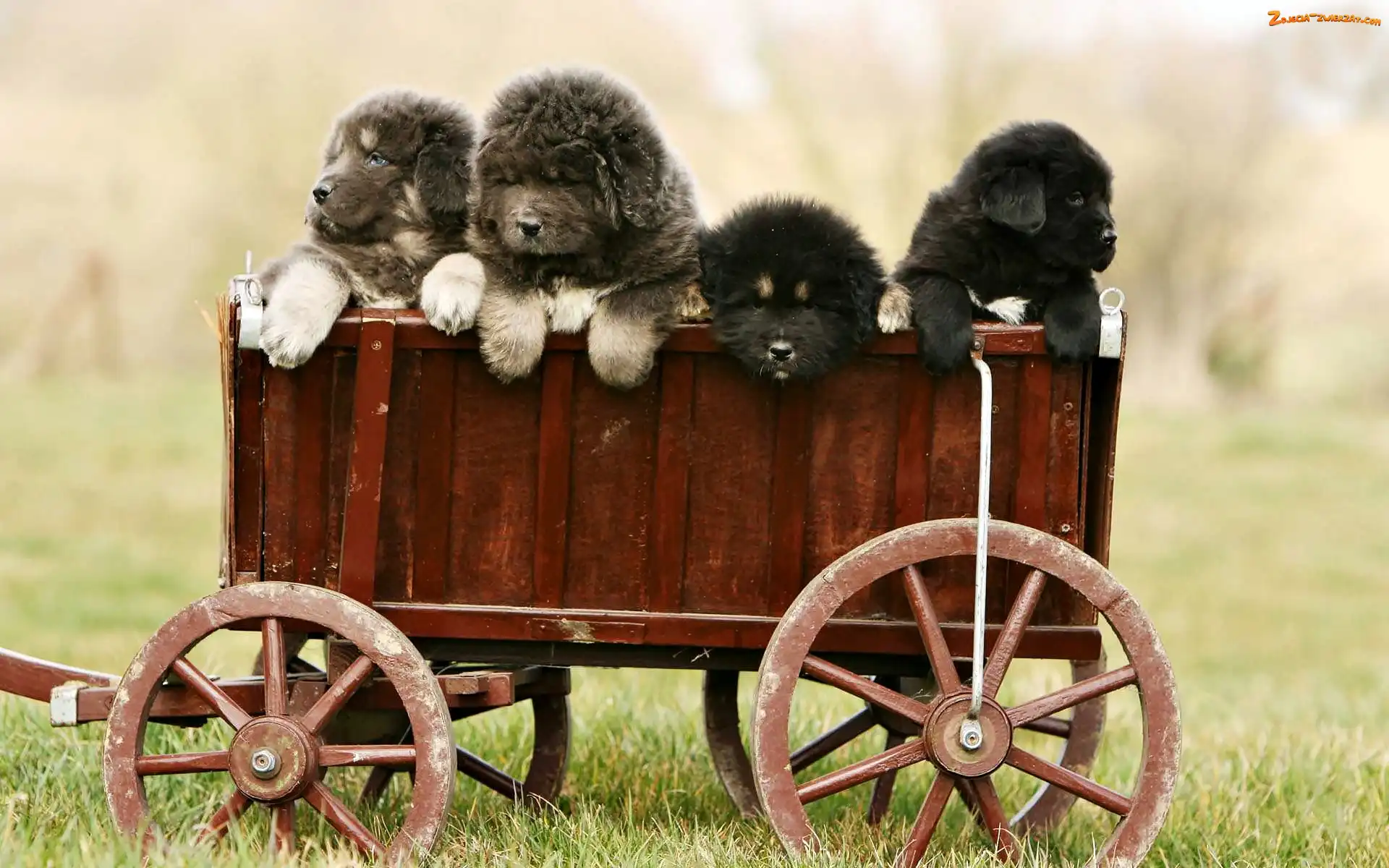 Zdjęcie: Tybetański, Mastiff, Psy, Wózek, Szczeniaki