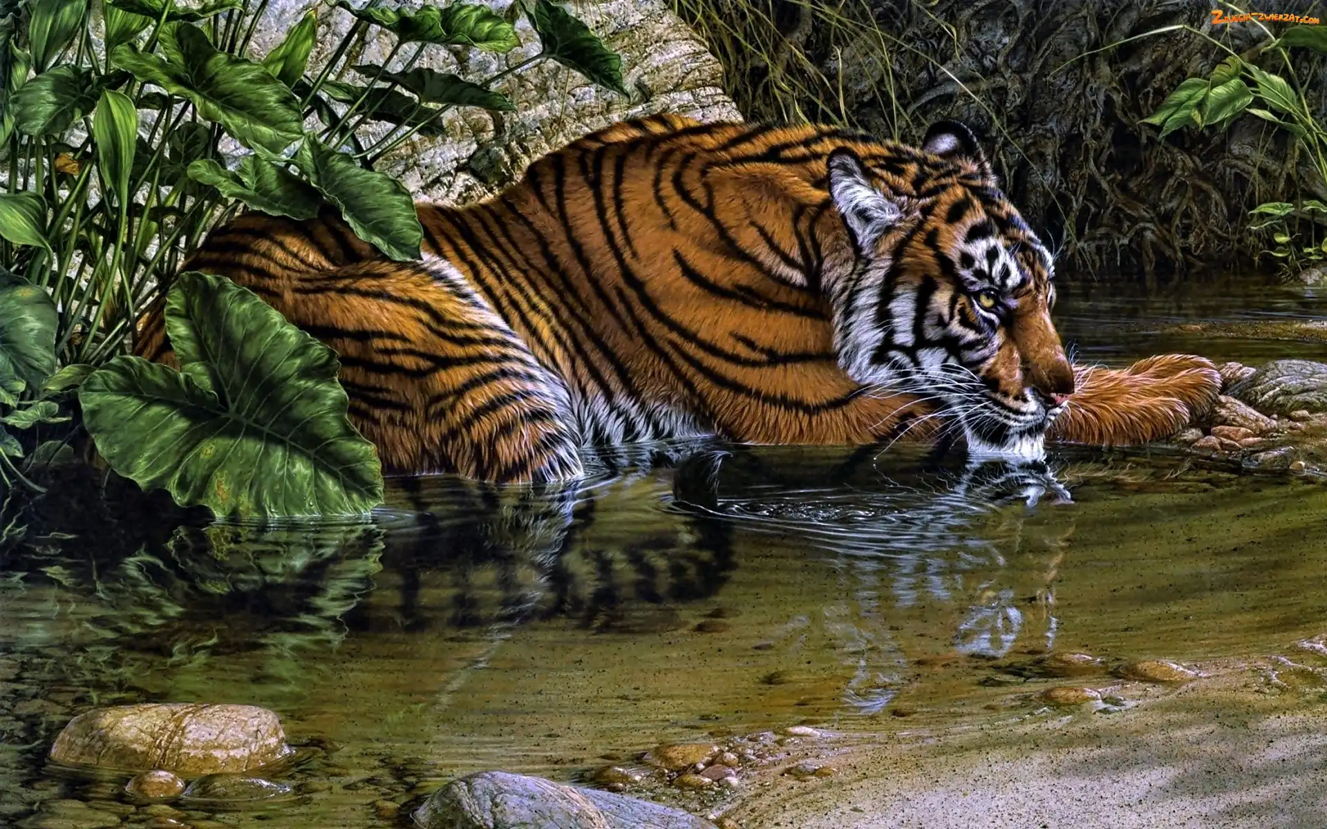 Zdjęcie: Odpoczynek, Tygrys, Woda