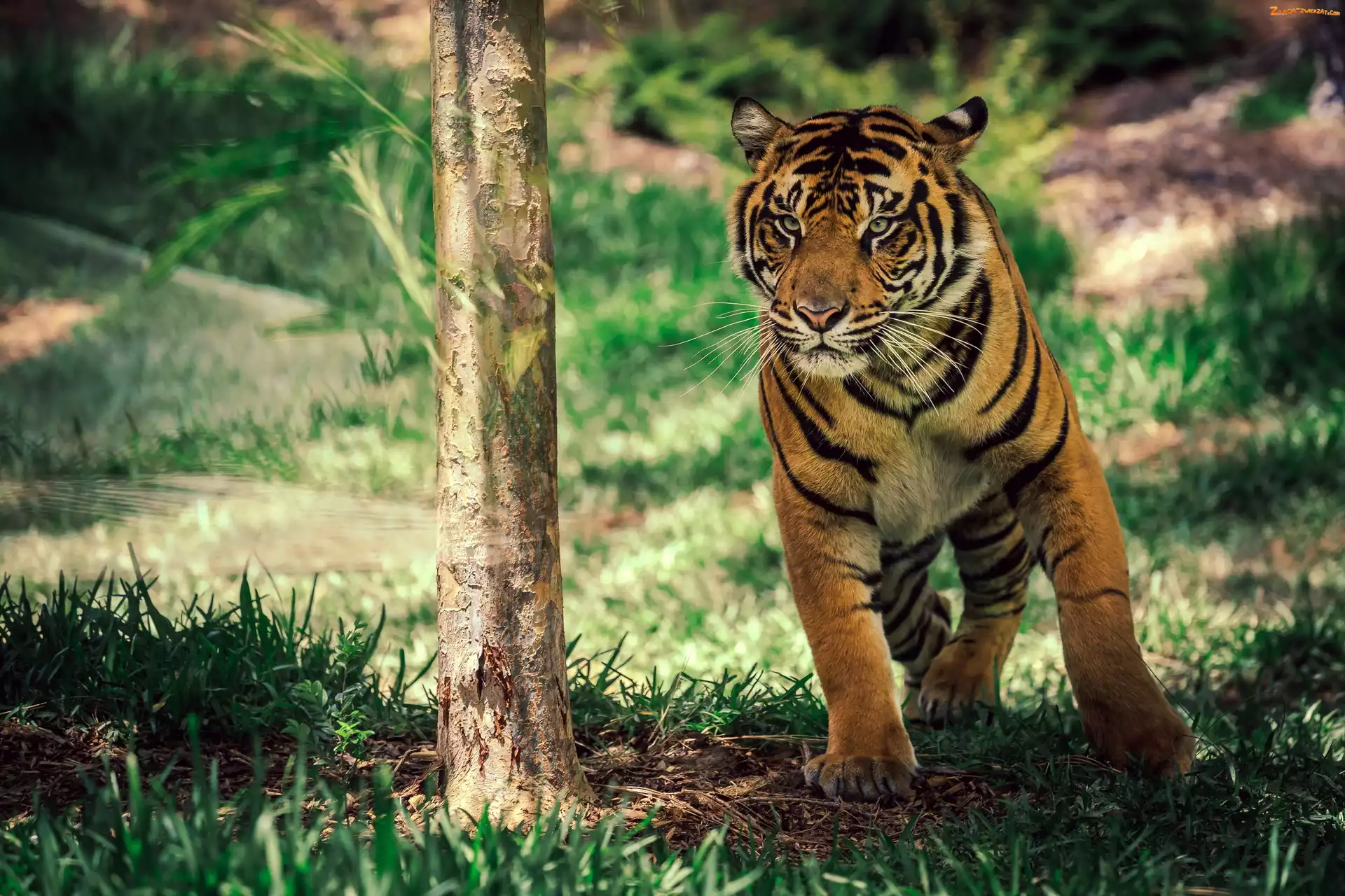 Zdjęcie: Trawa, Tygrys, Drzewo