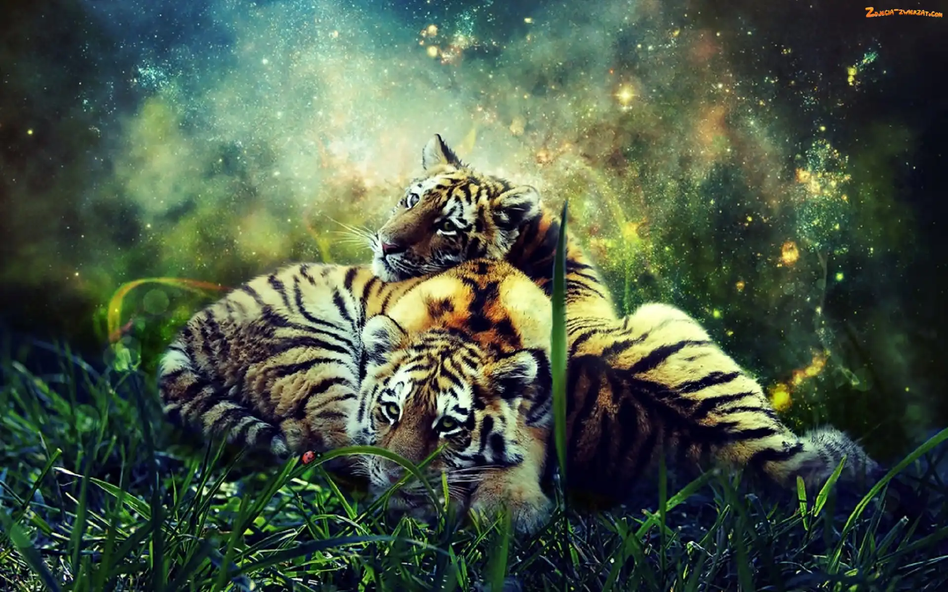 Zdjęcie: Tygrysy, Biedronka, Dwa, Trawa