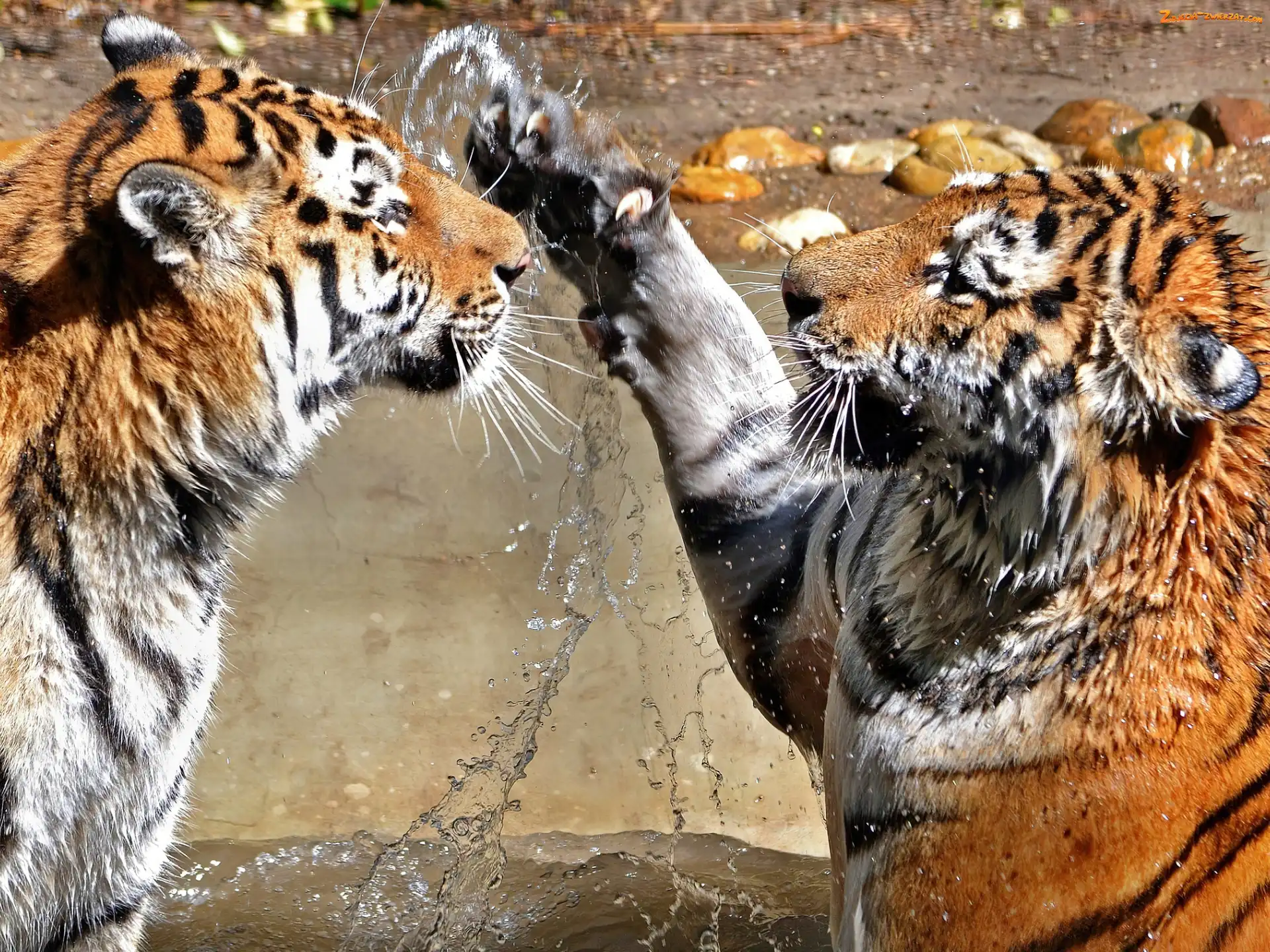 Zdjęcie: Woda, Tygrysy, Zabawa
