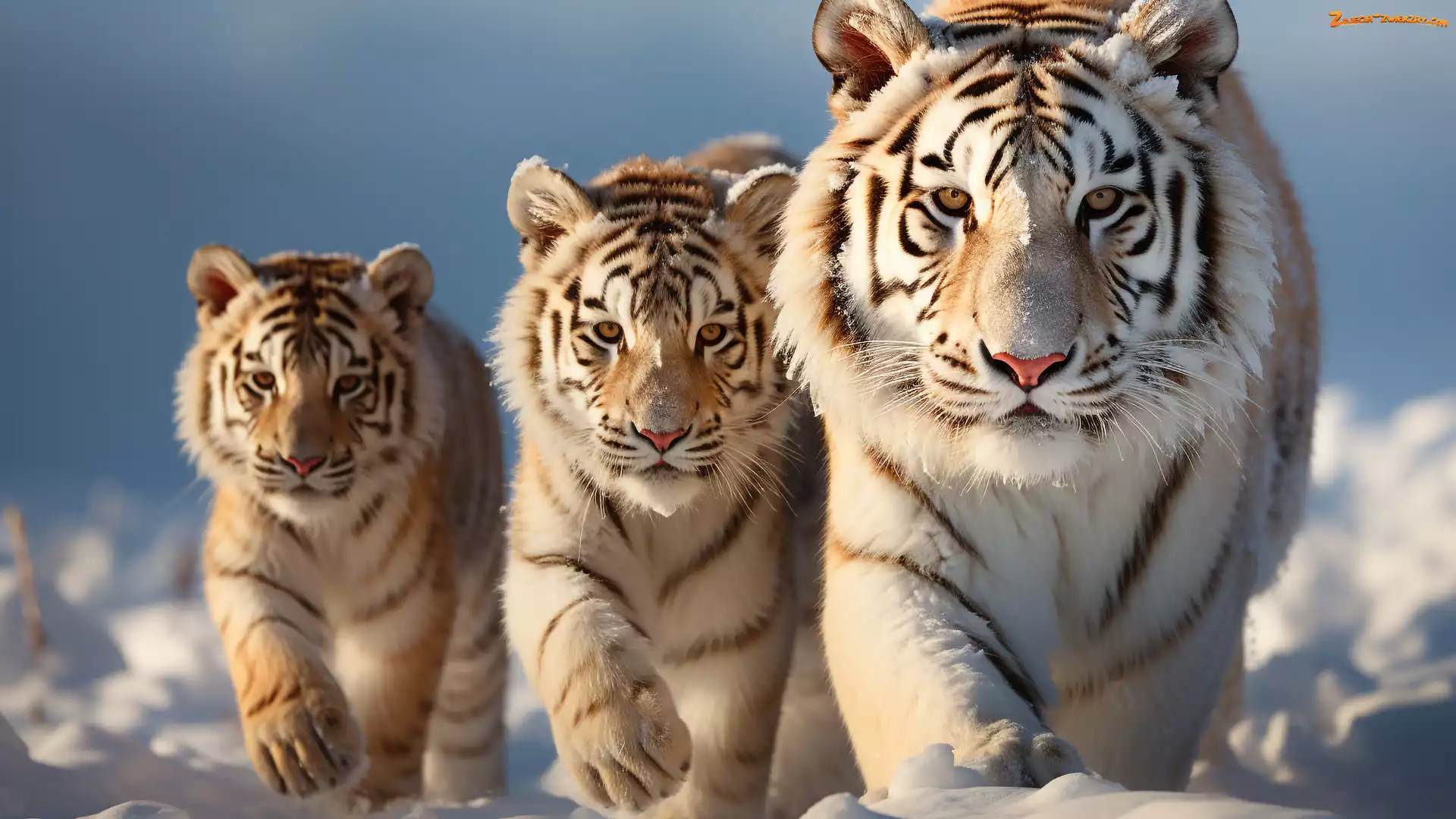 Zdjęcie: Zima, Trzy, Śnieg, Tygrysy