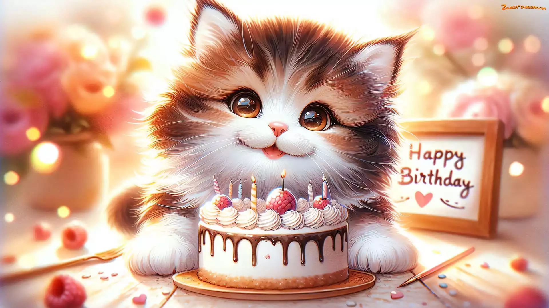 Zdjęcie: Życzenia, Urodziny, Grafika, Kot, Tort