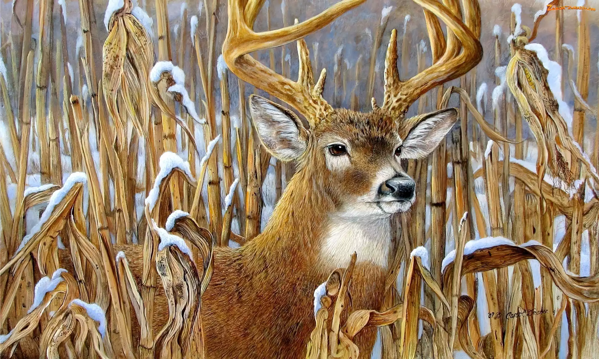 Zdjęcie: Uschłe, Śnieg, Jeleń, Trawy
