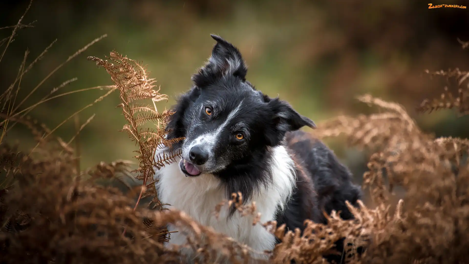 Zdjęcie: Paprocie, Uschnięte, Pies, Biało-czarny, Border collie