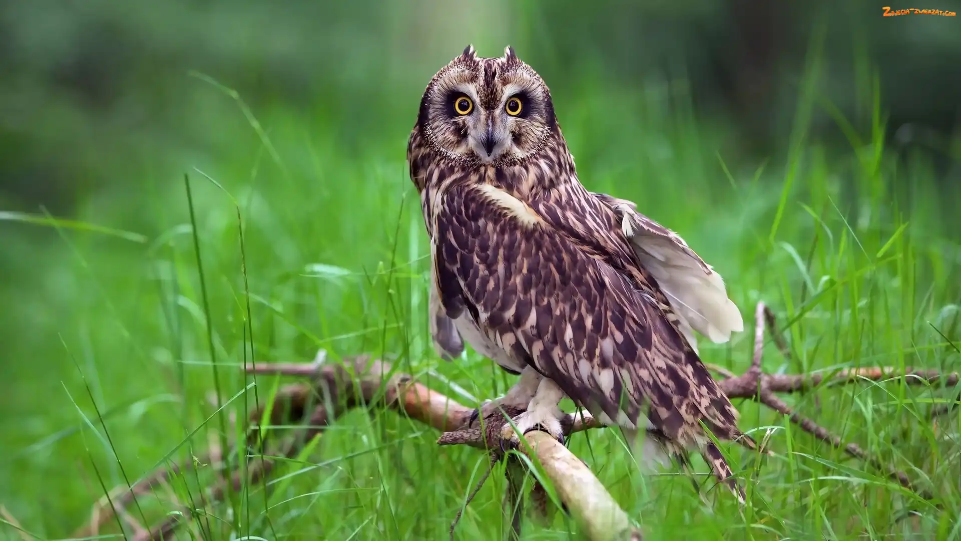 Zdjęcie: Uszatka błotna, Trawa, Sowa, Gałąź