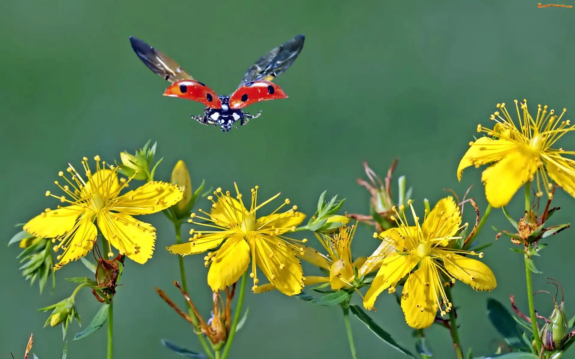 Dziurawiec, Kwiaty, W Locie, Biedronka, Żółte