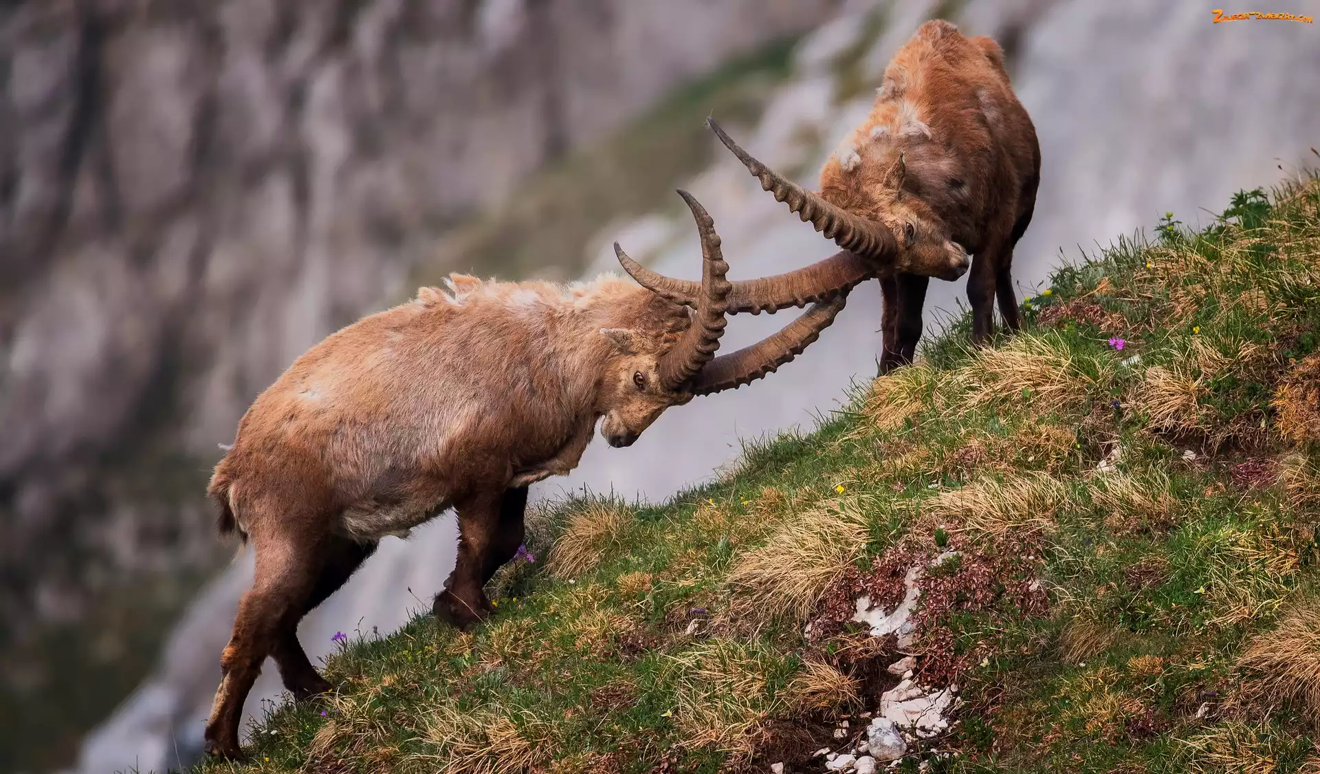 Zdjęcie: Walka, Dwa, Koziorożce alpejskie