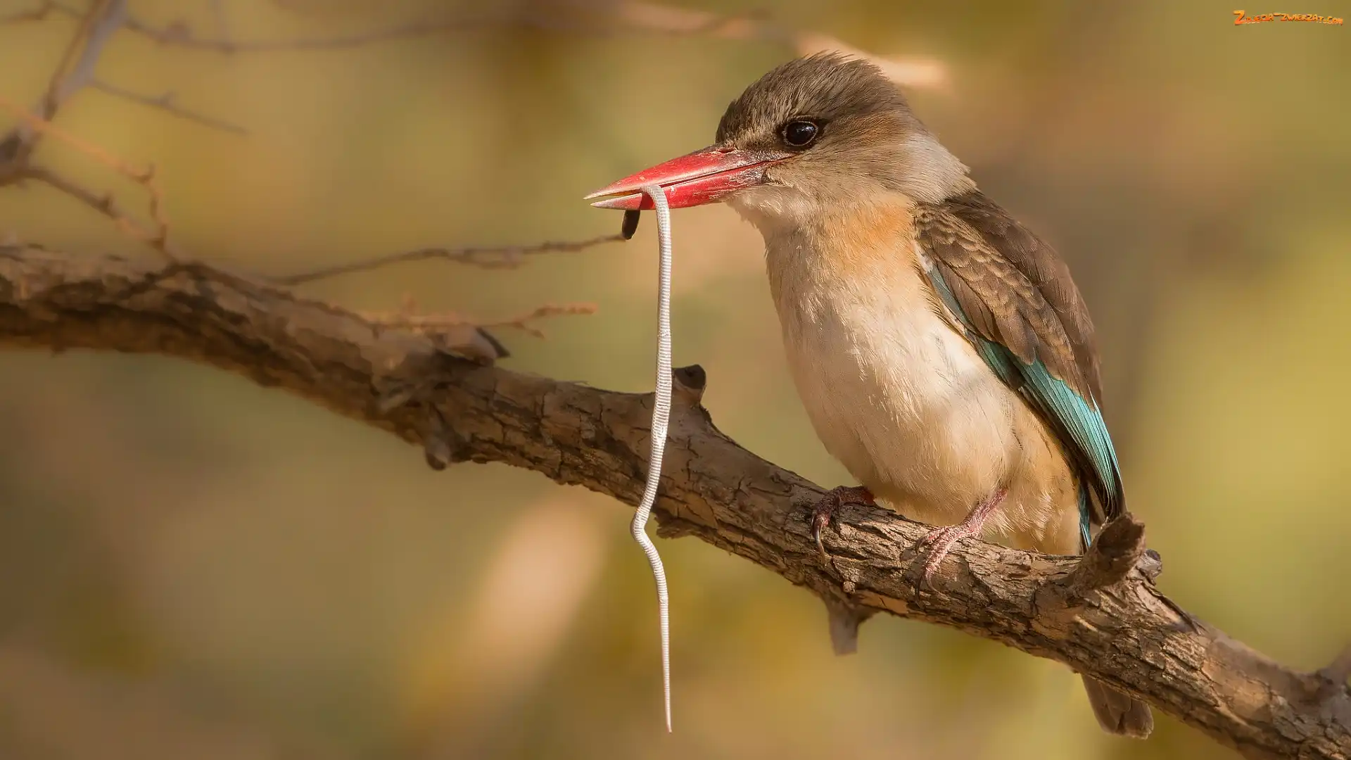 Zdjęcie: Wąż, Mały, Łowiec brązowogłowy, Ptak, Gałąż