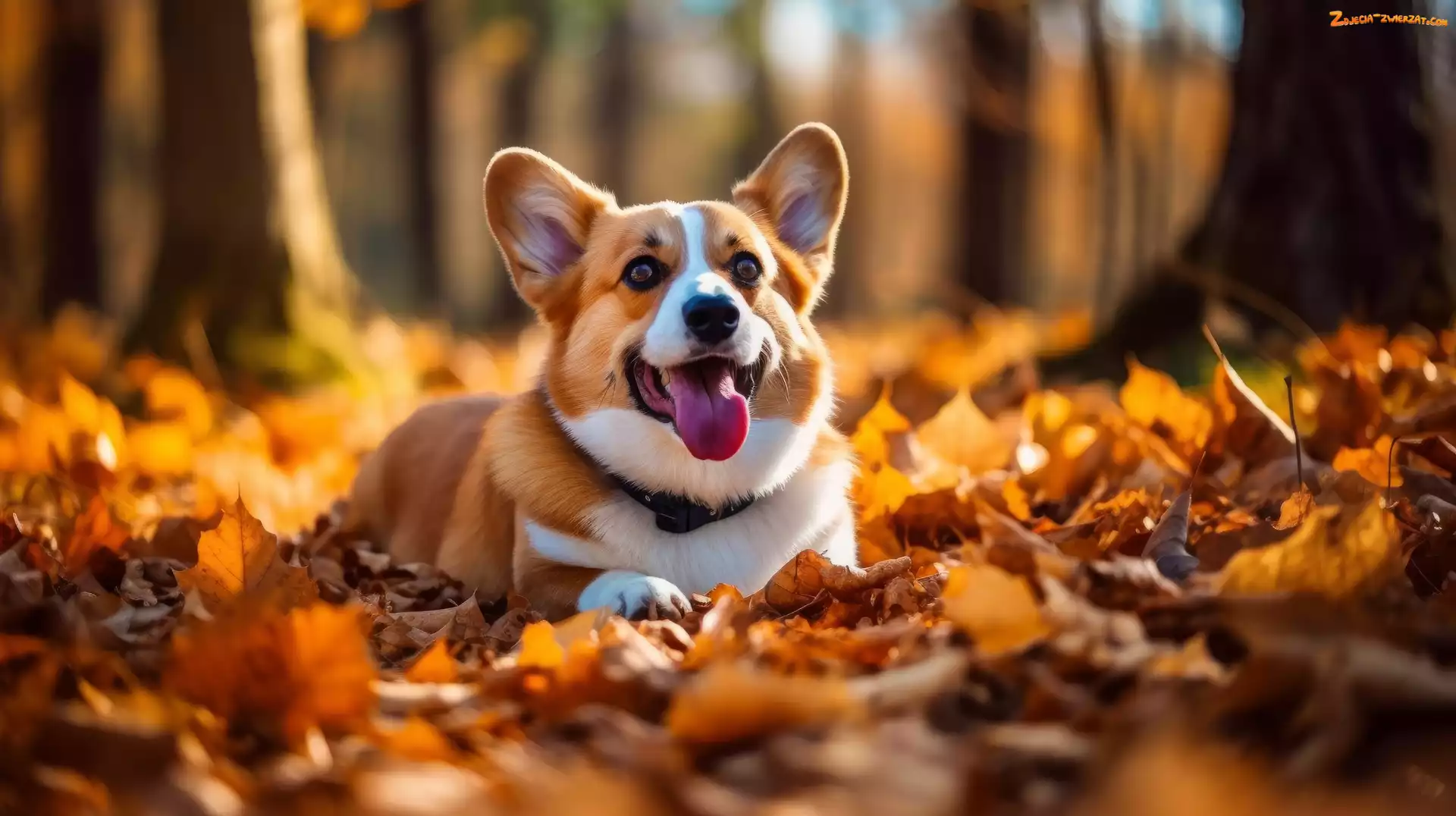 Zdjęcie: Jesień, Liście, Grafika, Welsh corgi pembroke, Pies