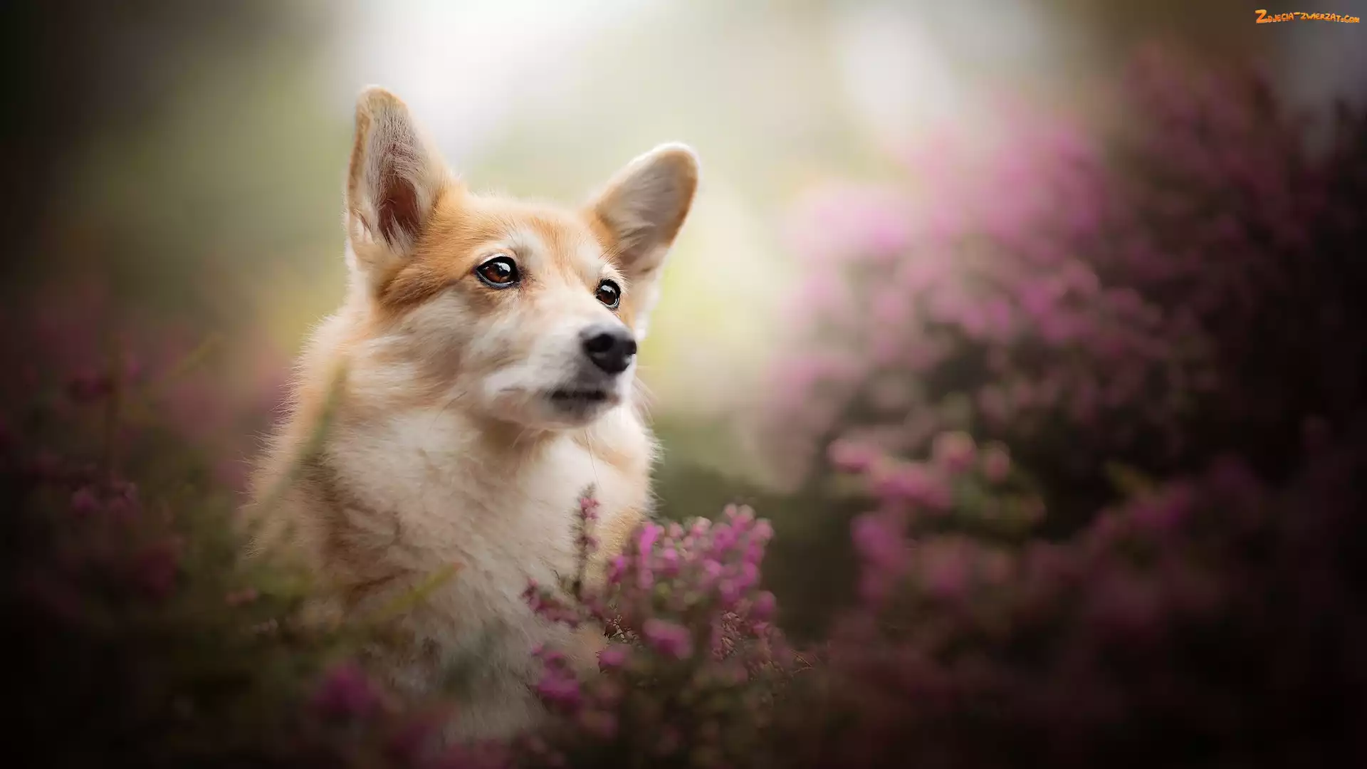 Zdjęcie: Welsh corgi pembroke, Wrzosy, Pies, Mordka