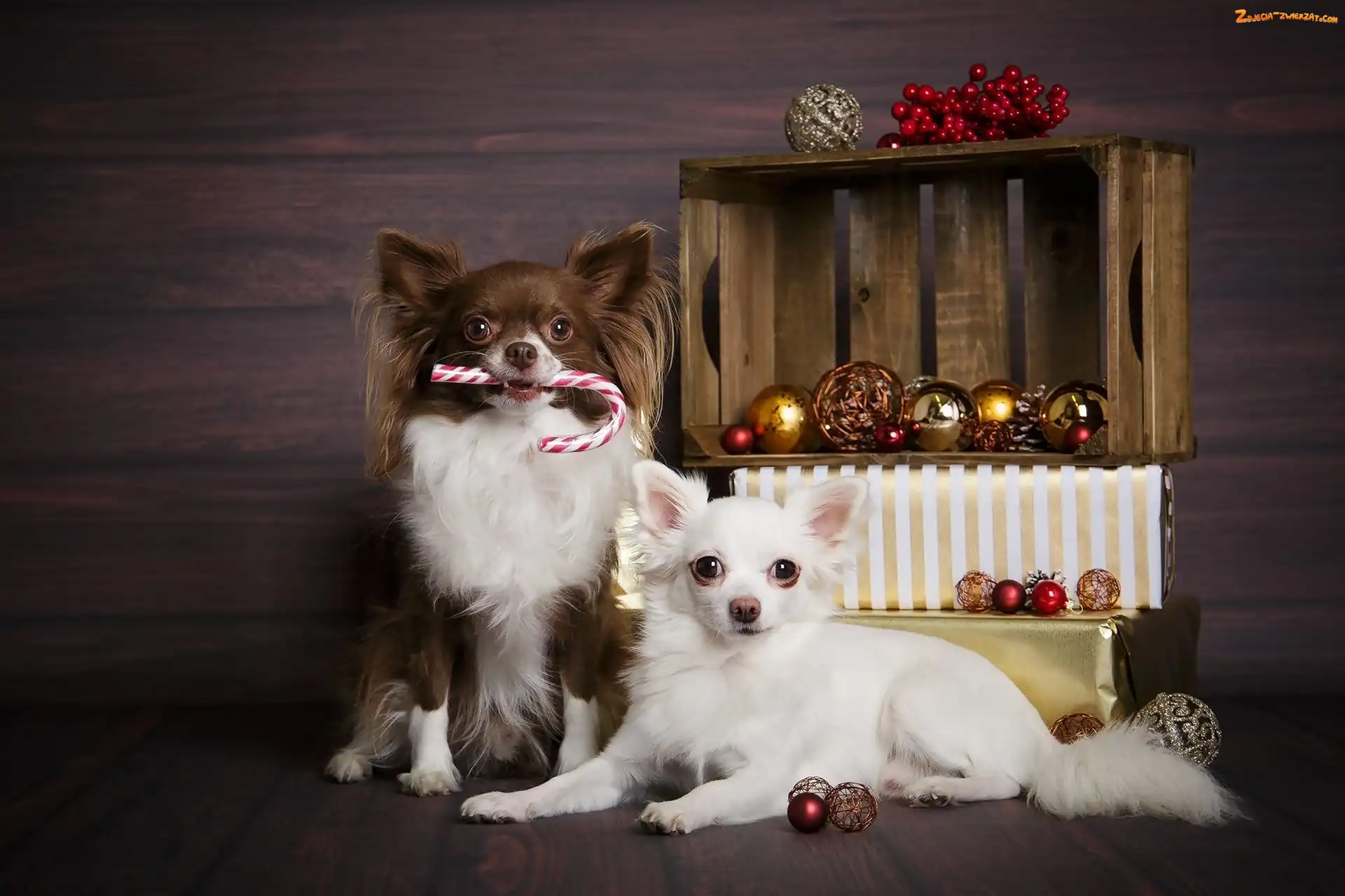 Zdjęcie: Świąteczne, Bombki, Psy, Dwa, Chihuahua długowłosa