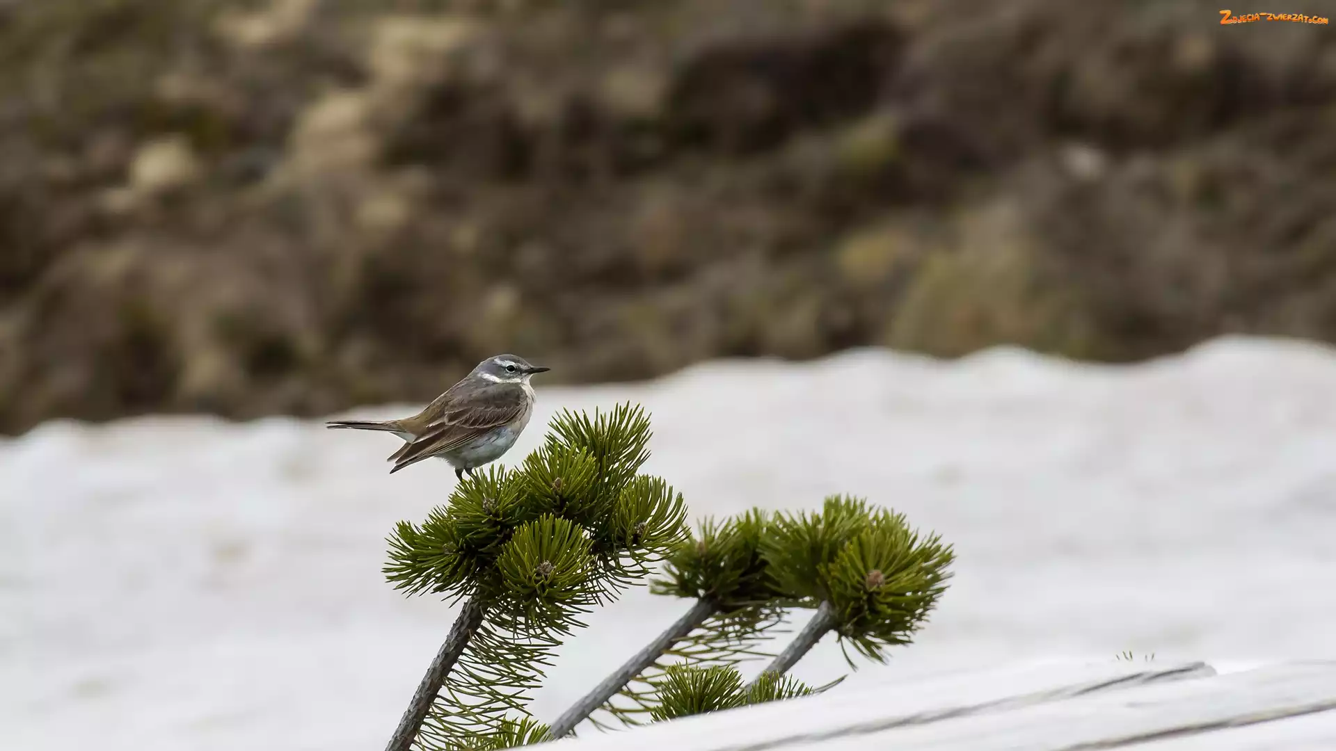 Tło, Świergotek górski, Ptak, Sosna, Rozmyte, Siwerniak, Gałązki