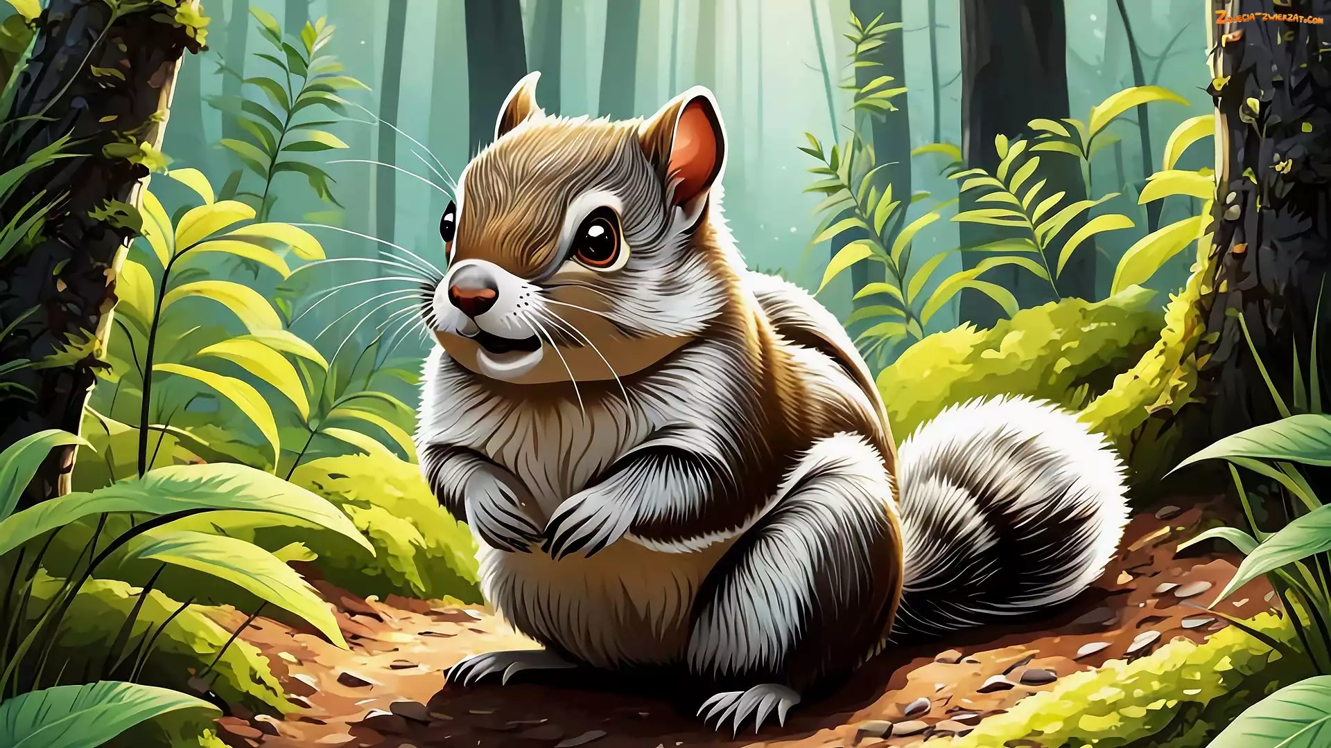 Zdjęcie: Grafika, Las, Rośliny, Wiewiórka