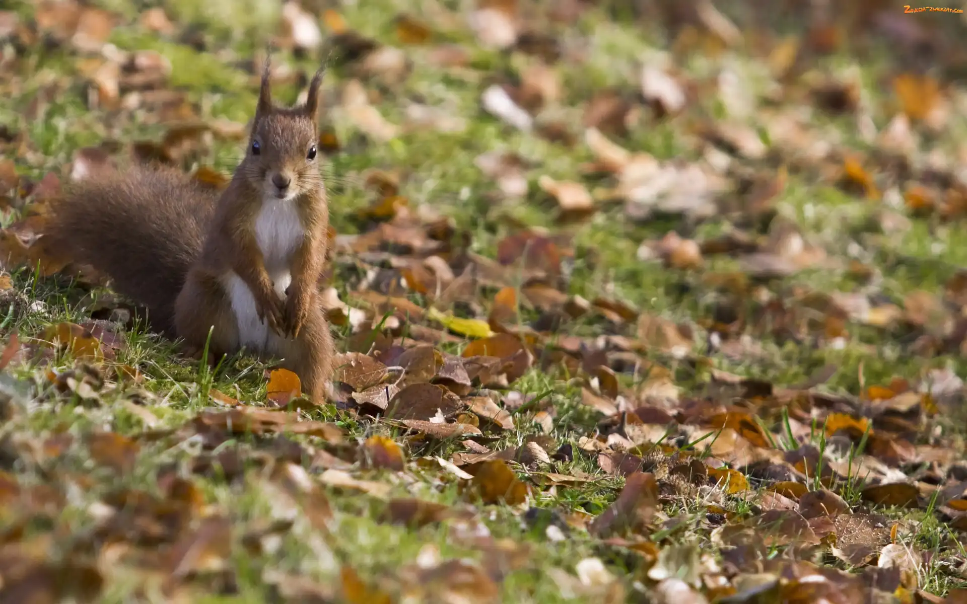 Zdjęcie: Jesień, Wiewiórka, Liście