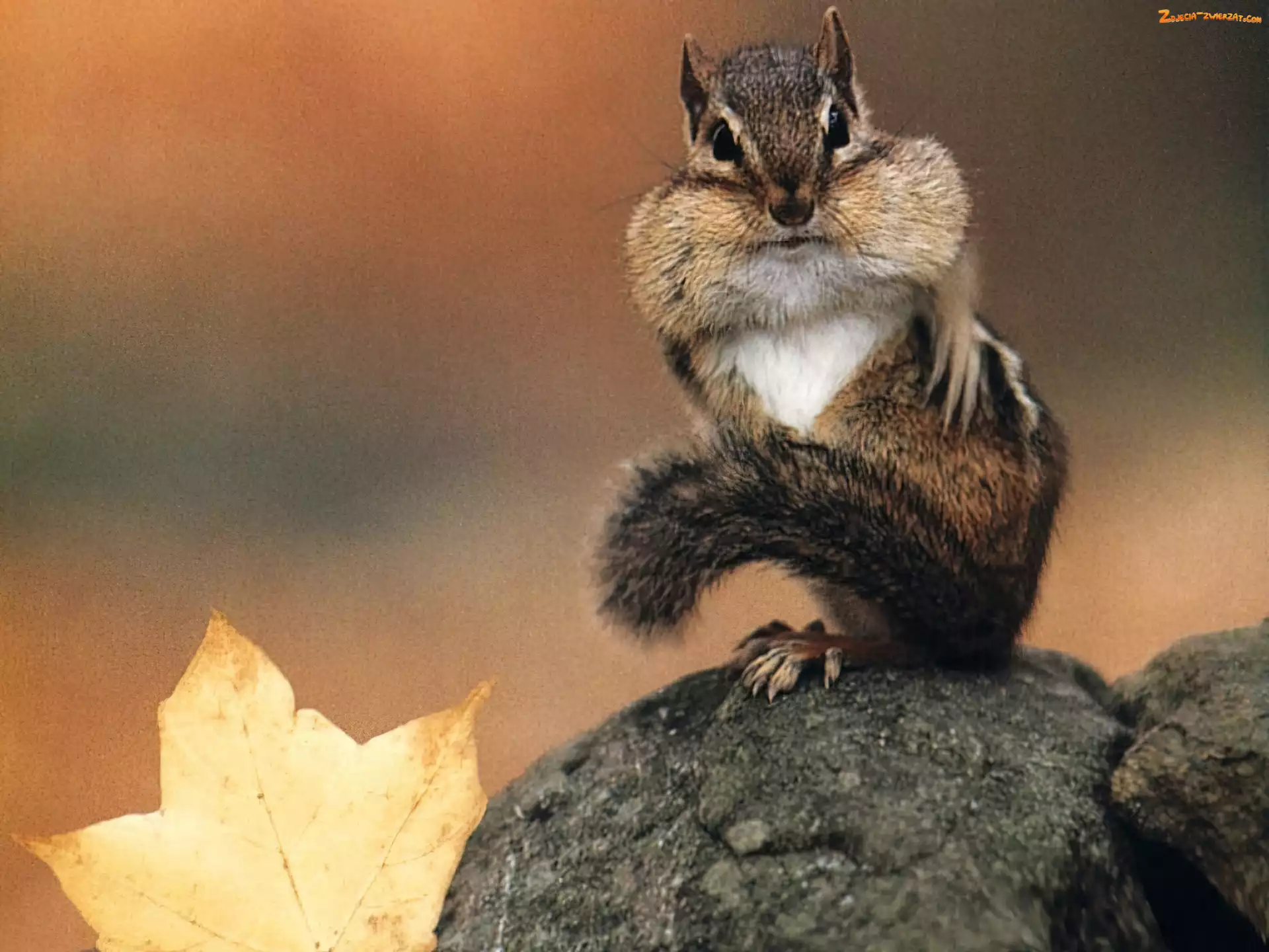 Zdjęcie: Kamień, Wiewiórka, Liść