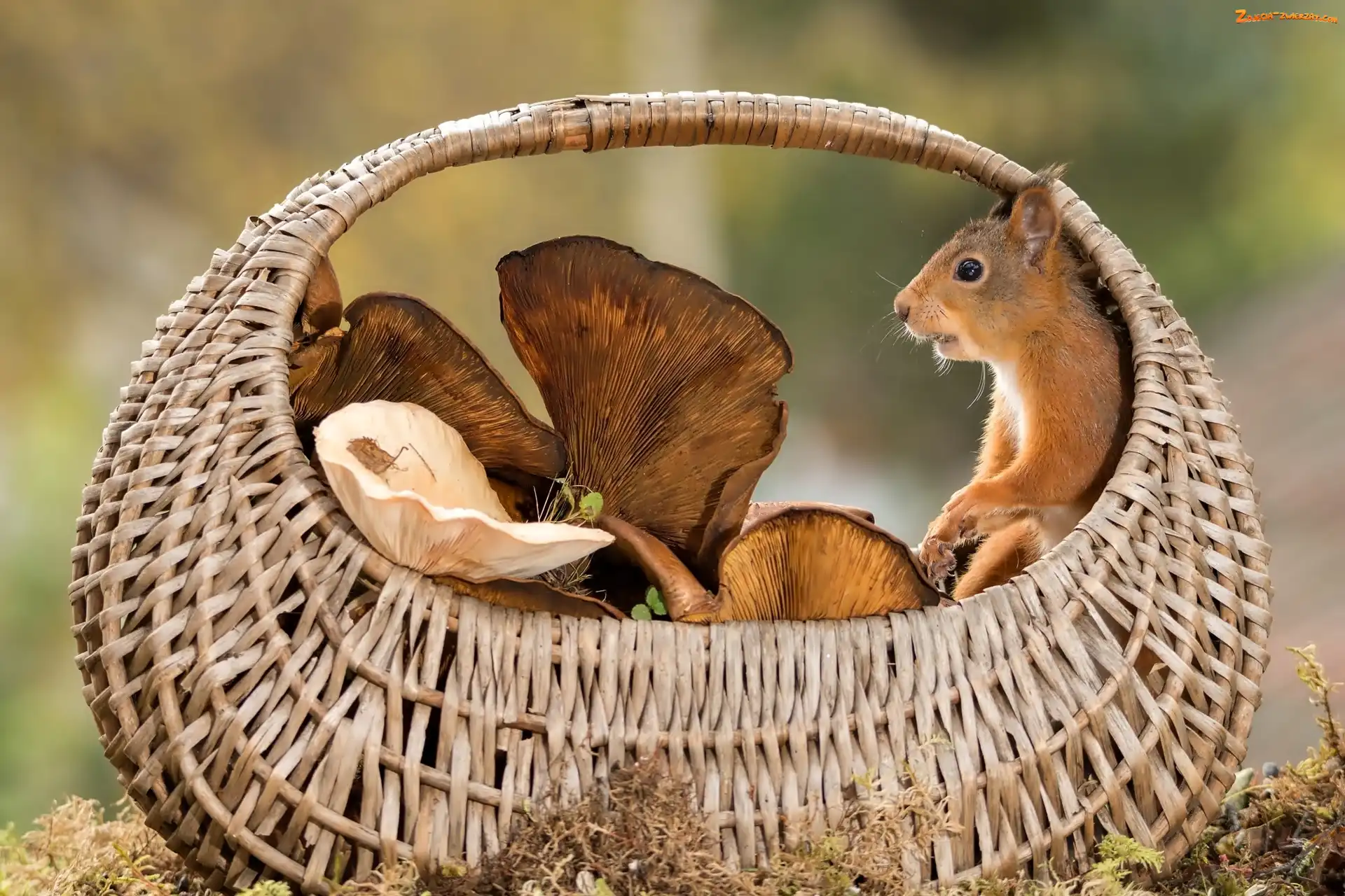 Zdjęcie: Koszyk, Wiewiórka, Grzyby