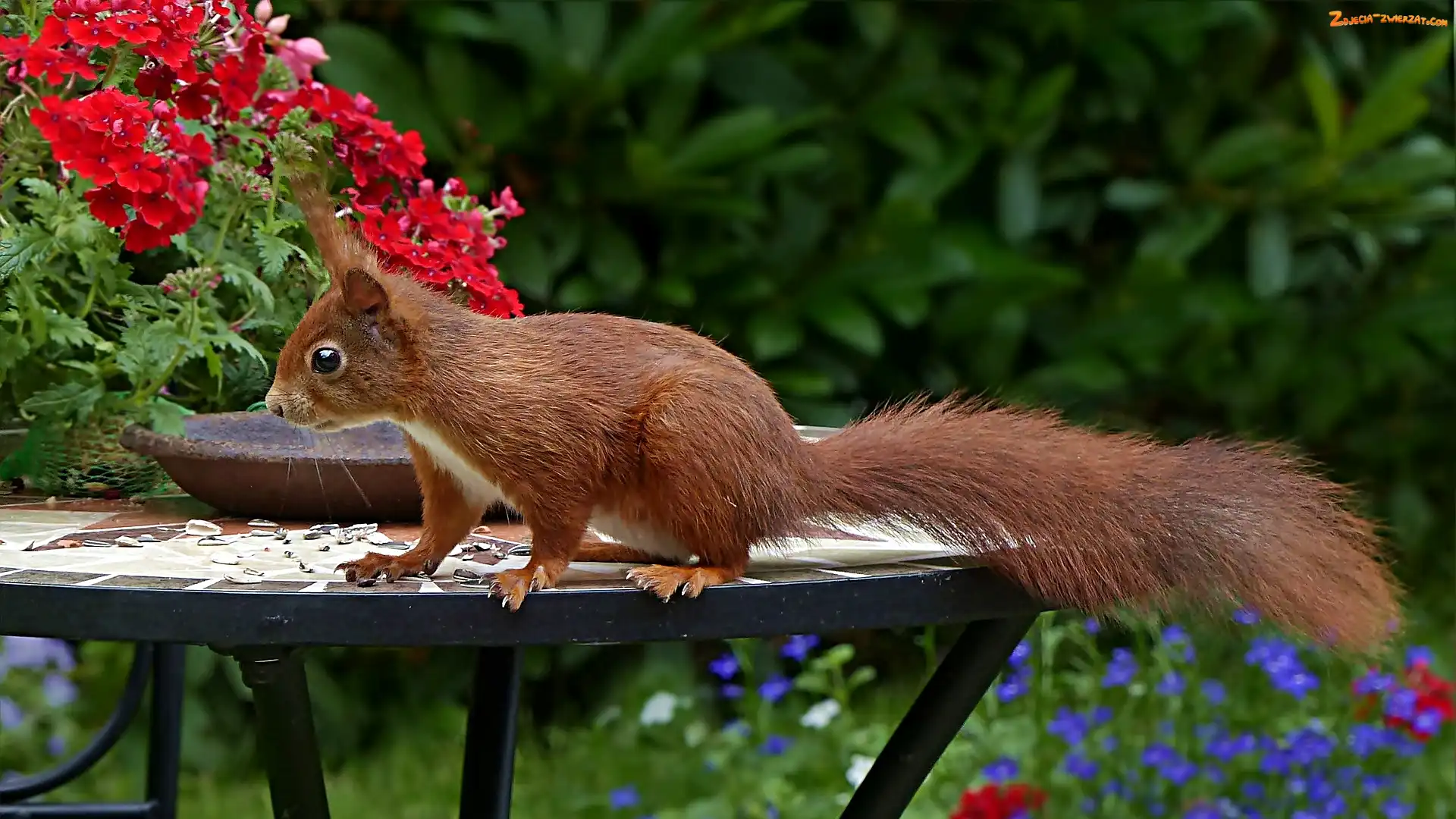 Zdjęcie: Kwiaty, Wiewiórka, Stolik