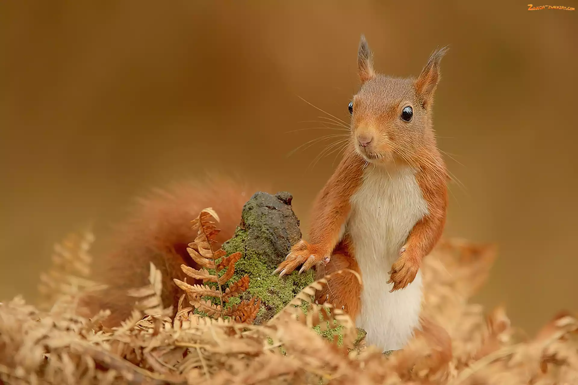 Zdjęcie: Liście, Wiewiórka, Kamień