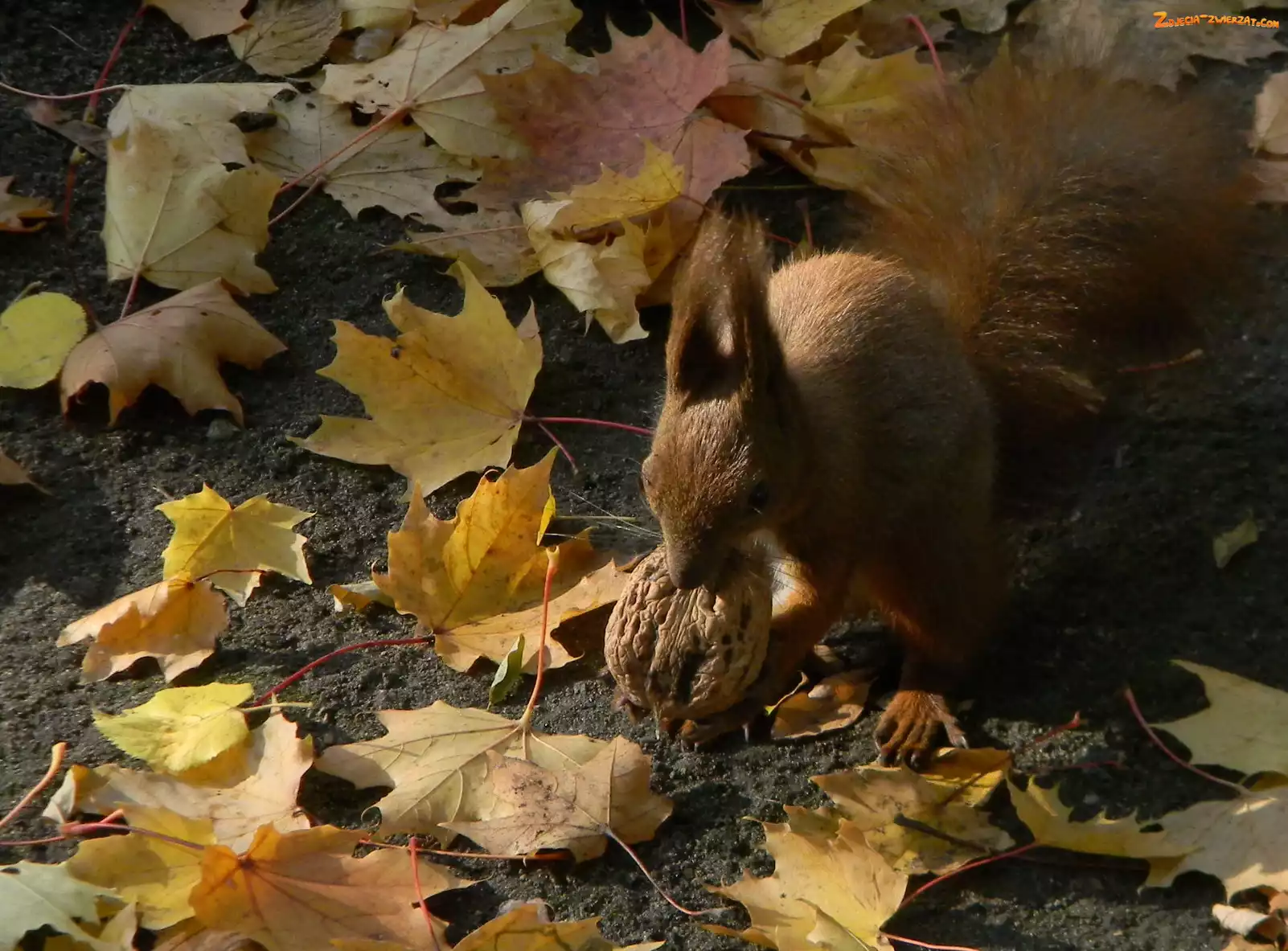 Zdjęcie: Liście, Wiewiórka, Orzech