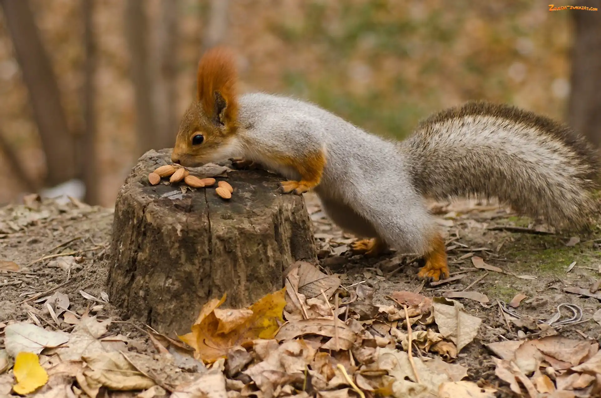 Zdjęcie: Migdały, Wiewiórka, Liście