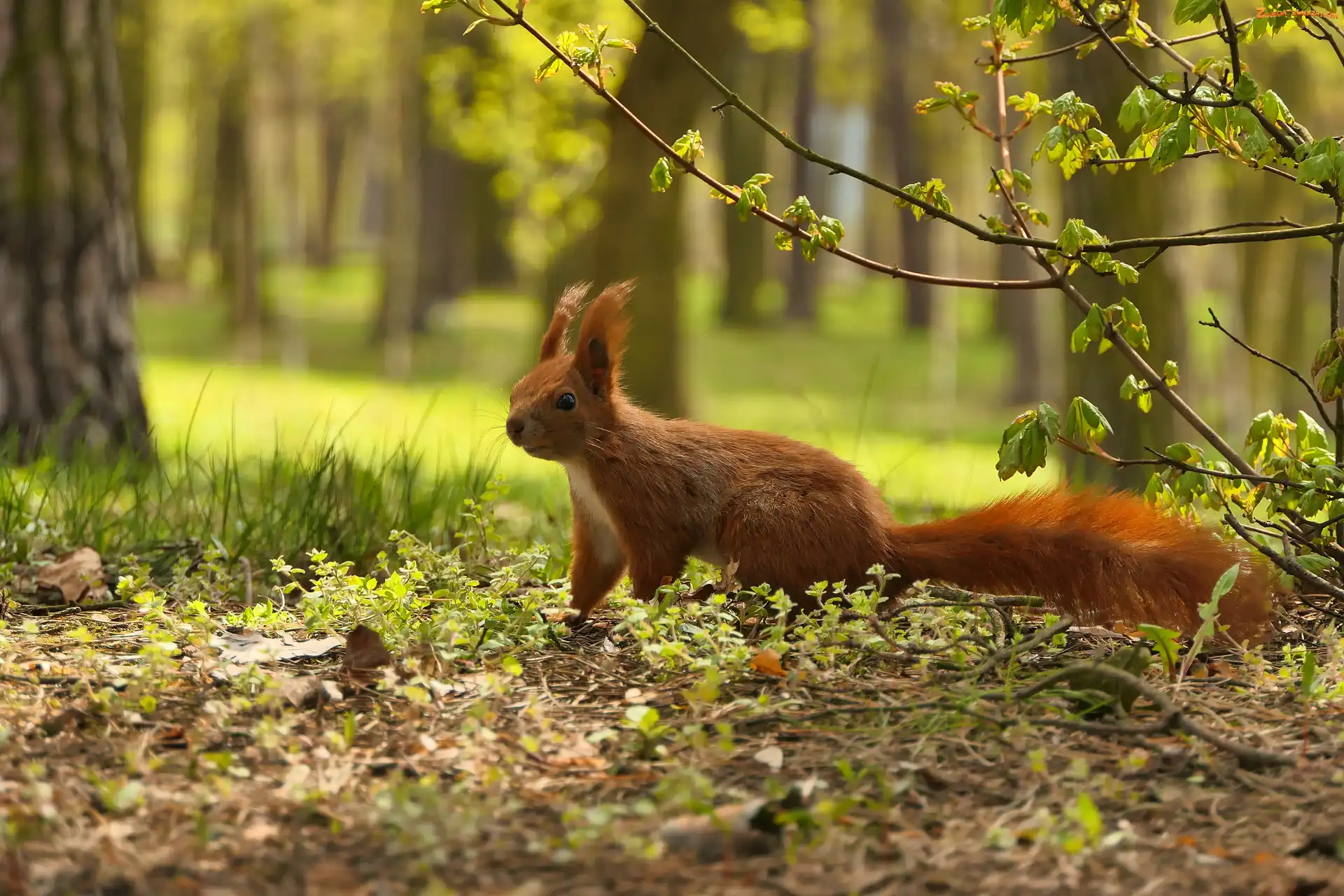 Zdjęcie: Wiewiórka, Gałązki, Ruda, Trawa