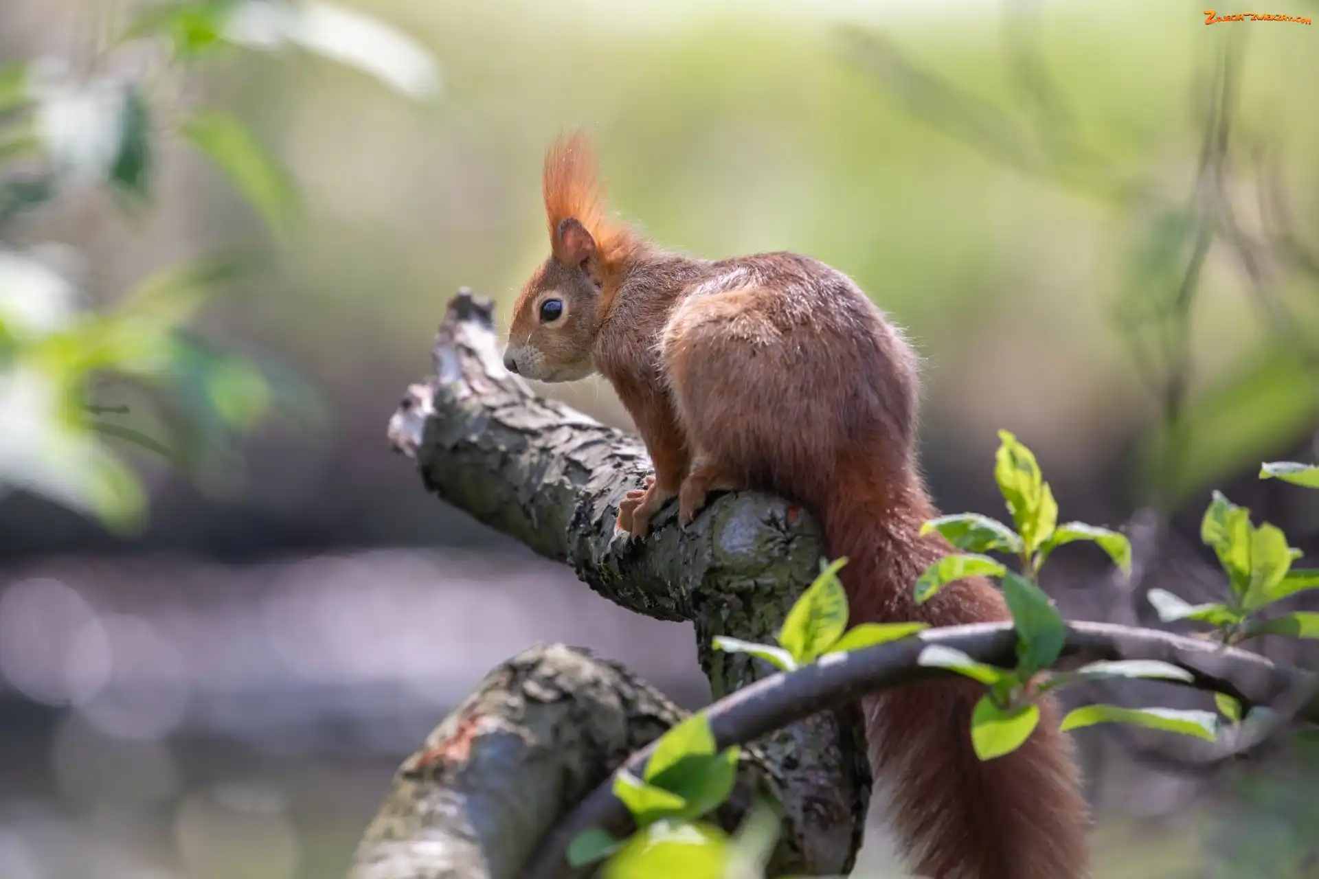 Wiewiórka, Liście, Ruda, Konar