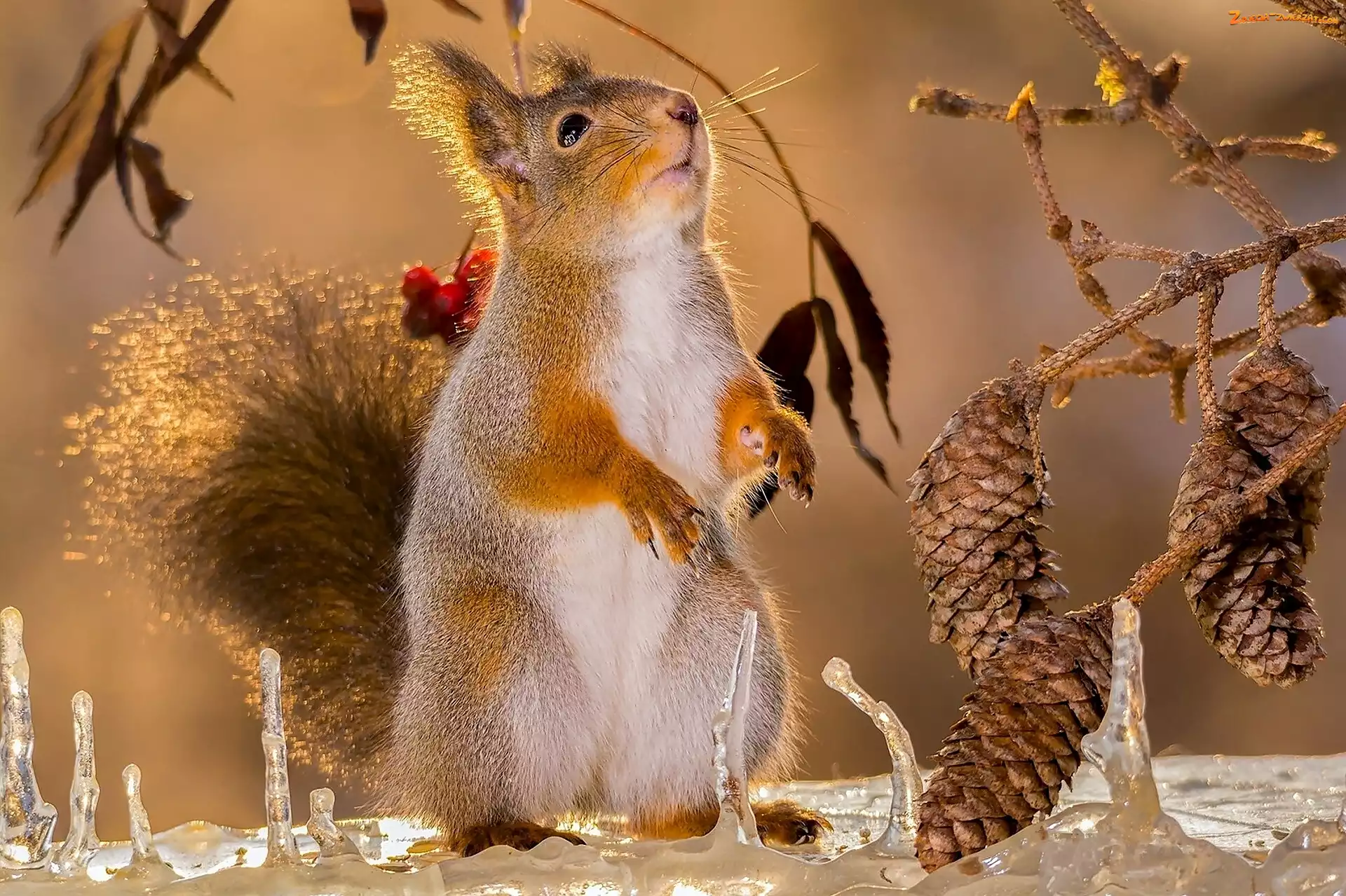 Zdjęcie: Sople, Wiewiórka, Szyszki