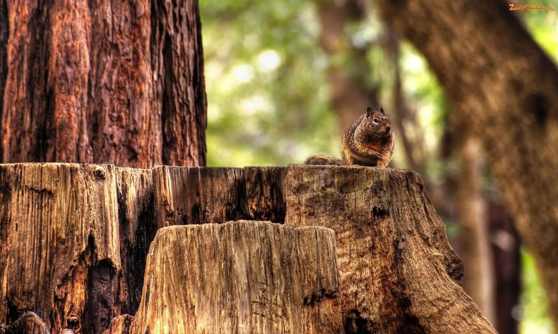 Wiewiórka, Ruda, Drzewa, Stare, Pnie