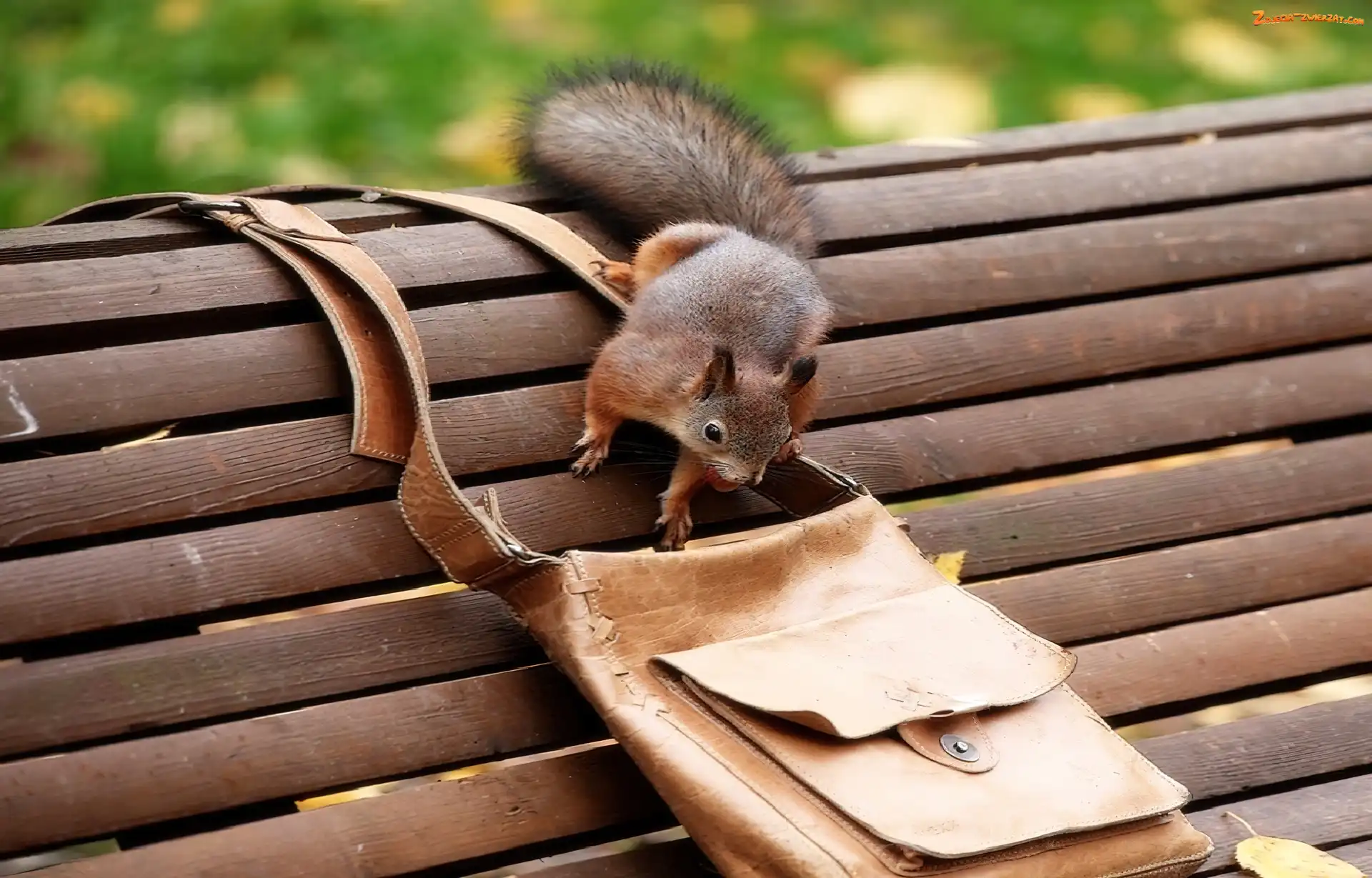 Zdjęcie: Torebka, Wiewiórka, Ławka