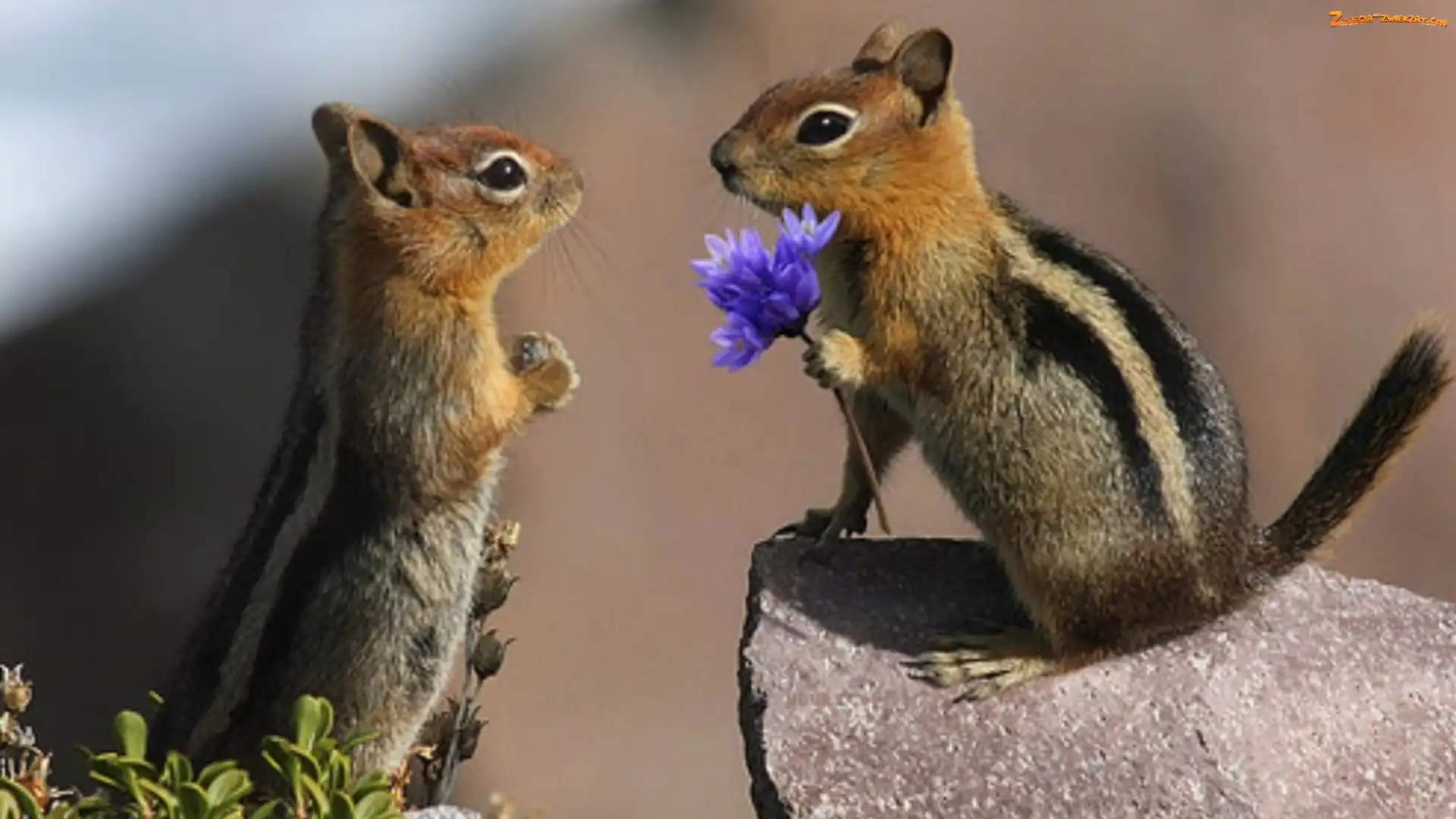 Zdjęcie: Wiewiórki, Kamień, Dwie, Kwiatek