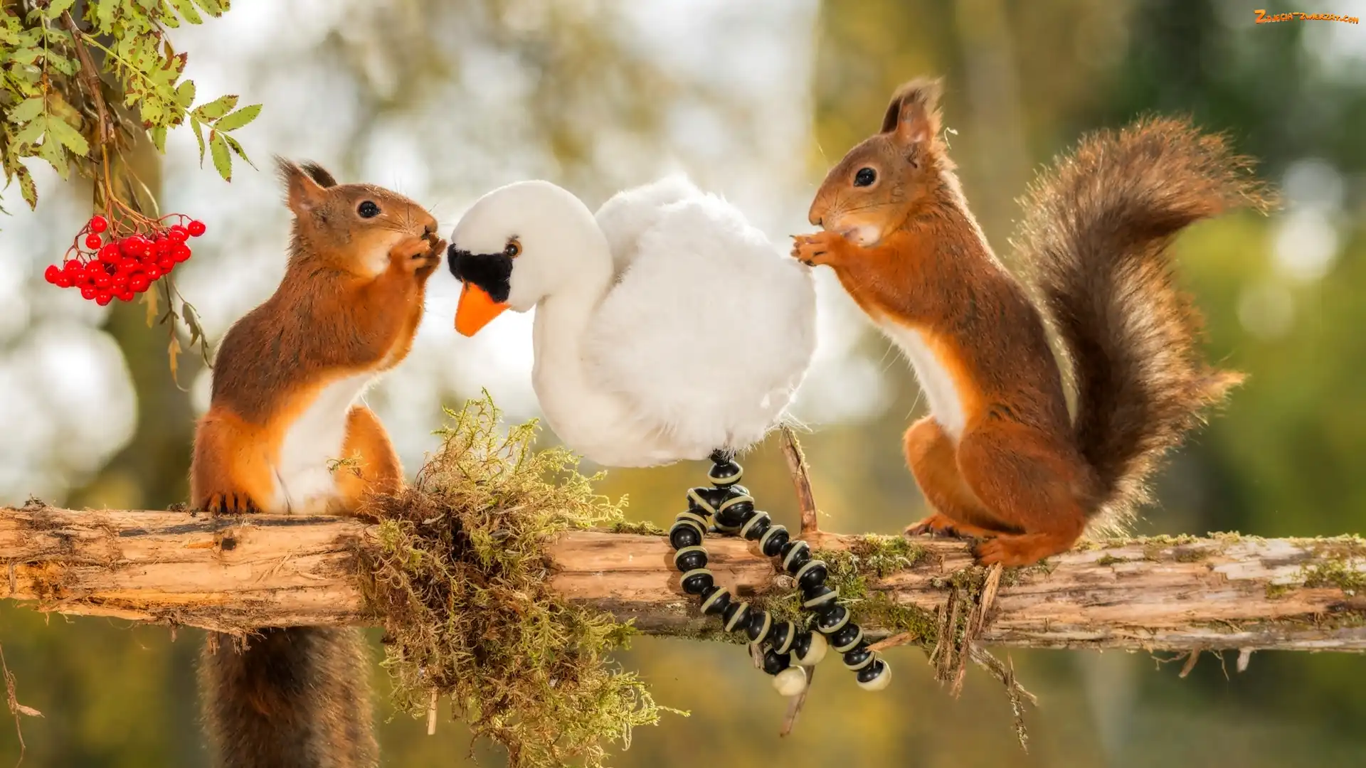 Zdjęcie: Jarzebina, Wiewiórki, Dwie, Maskotka, Gałąź, Słodkie, Pluszowa
