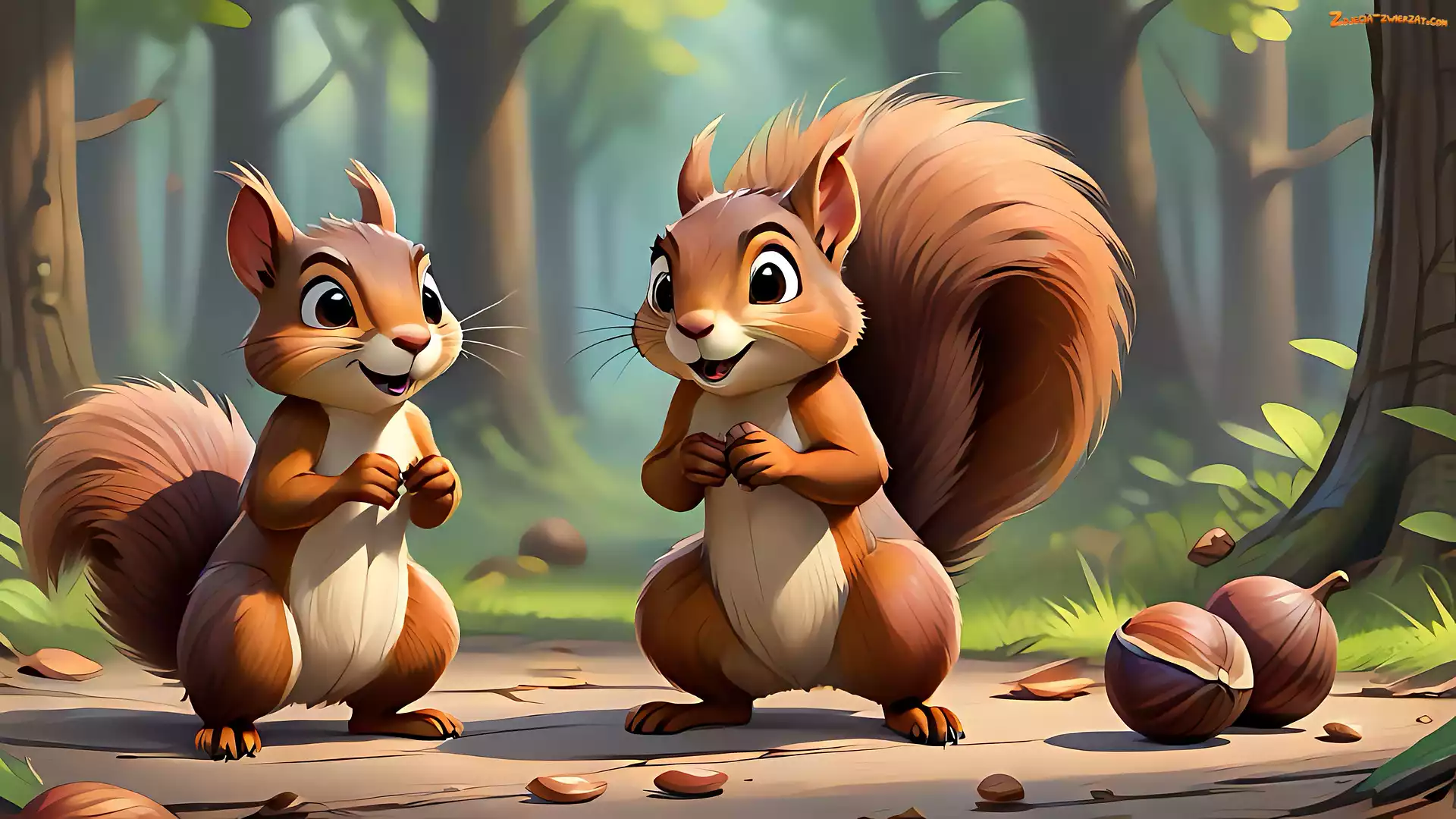 Zdjęcie: Orzechy, Wiewiórki, Las, Grafika, Dwie