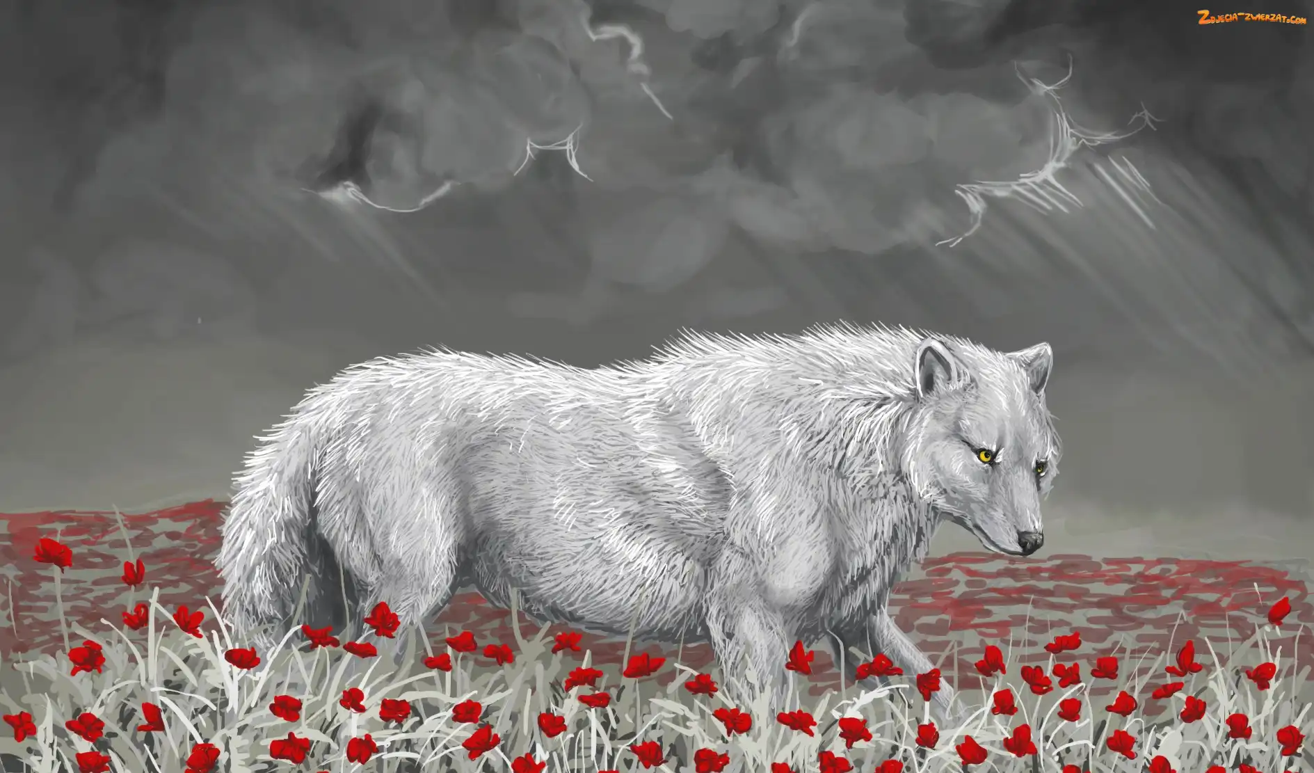 Zdjęcie: Wilk, Kwiatki, Biały, Czerwone