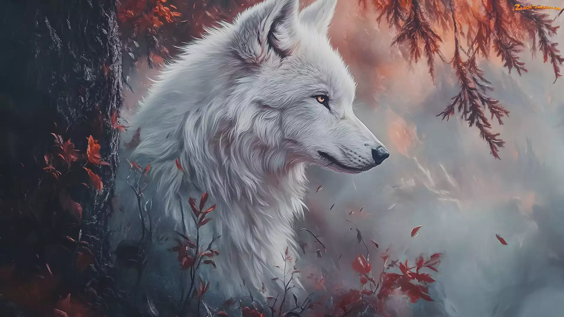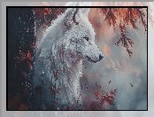 Zdjęcie: Grafika, Jesień, Biały, Wilk, Rośliny, Drzewo