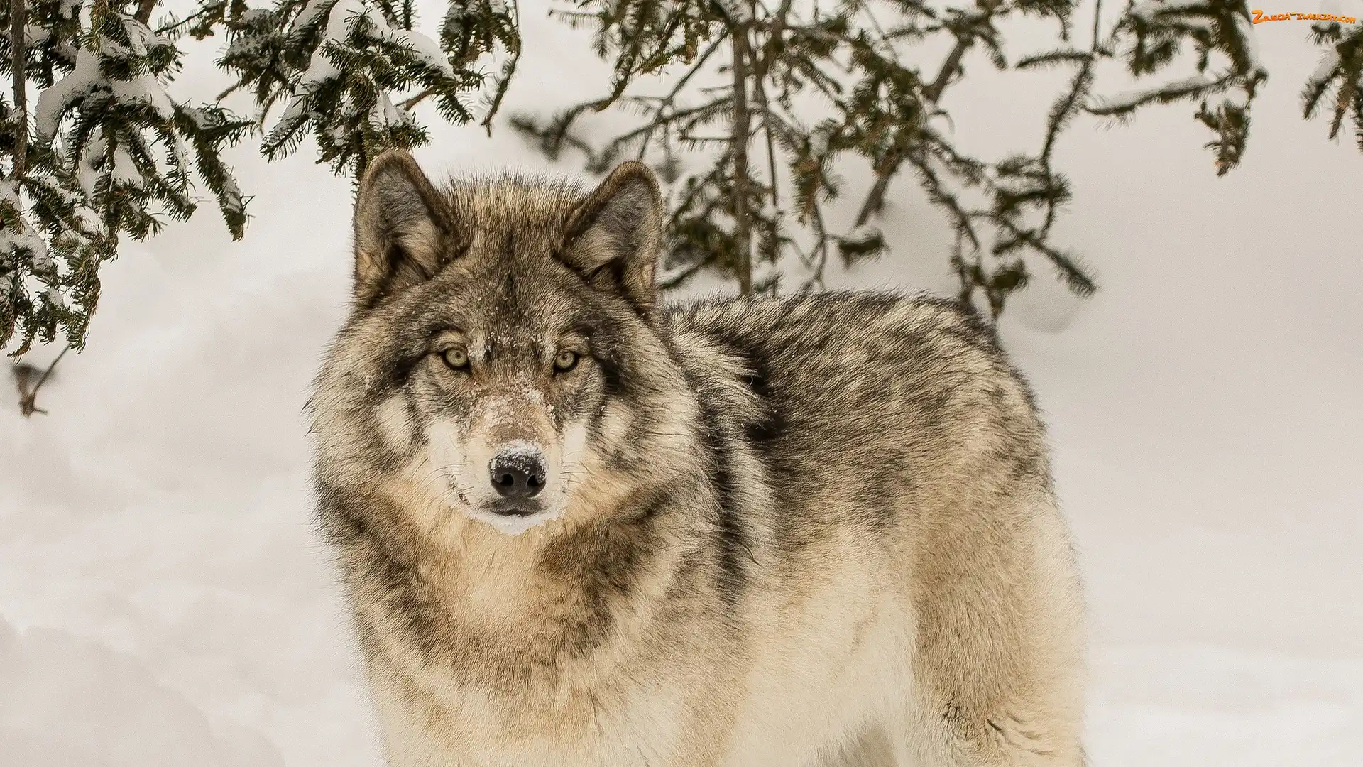 Zdjęcie: Śnieg, Drzewo, Wilk, Iglaste