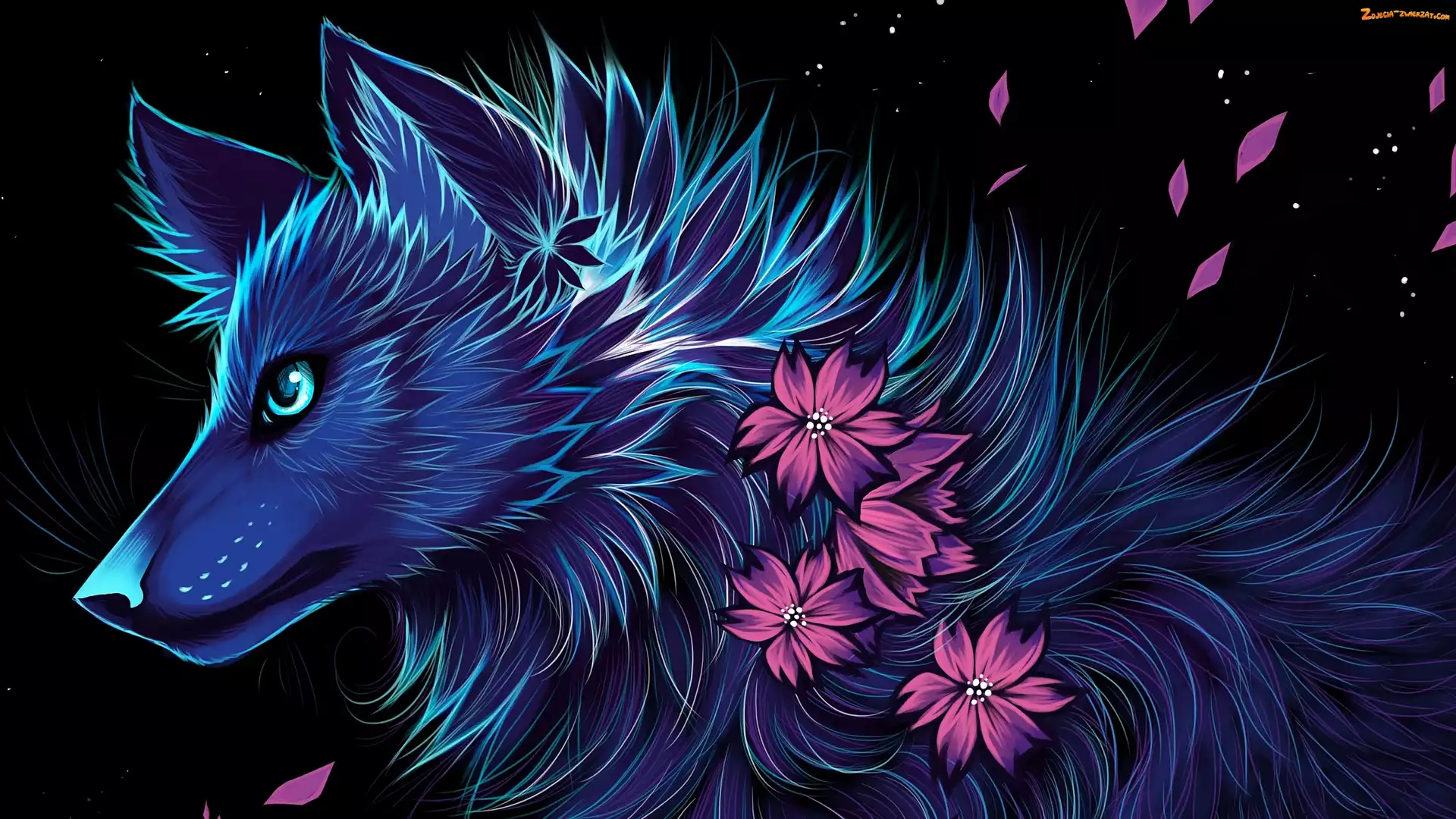 Zdjęcie: Grafika, Wilk, Kwiaty