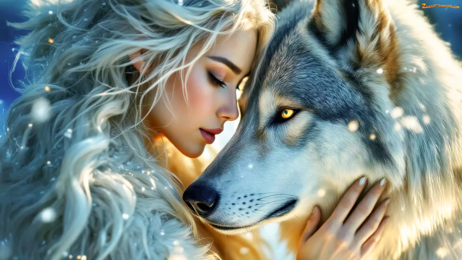 Zdjęcie: Kobieta, Blondynka, Śnieg, Wilk