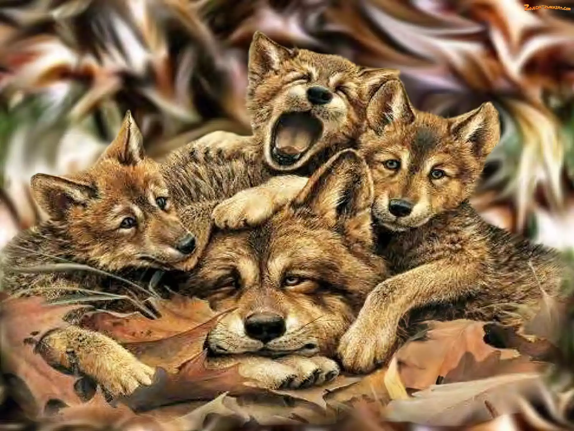 Zdjęcie: Wilk, Młode, Mama, Trzy