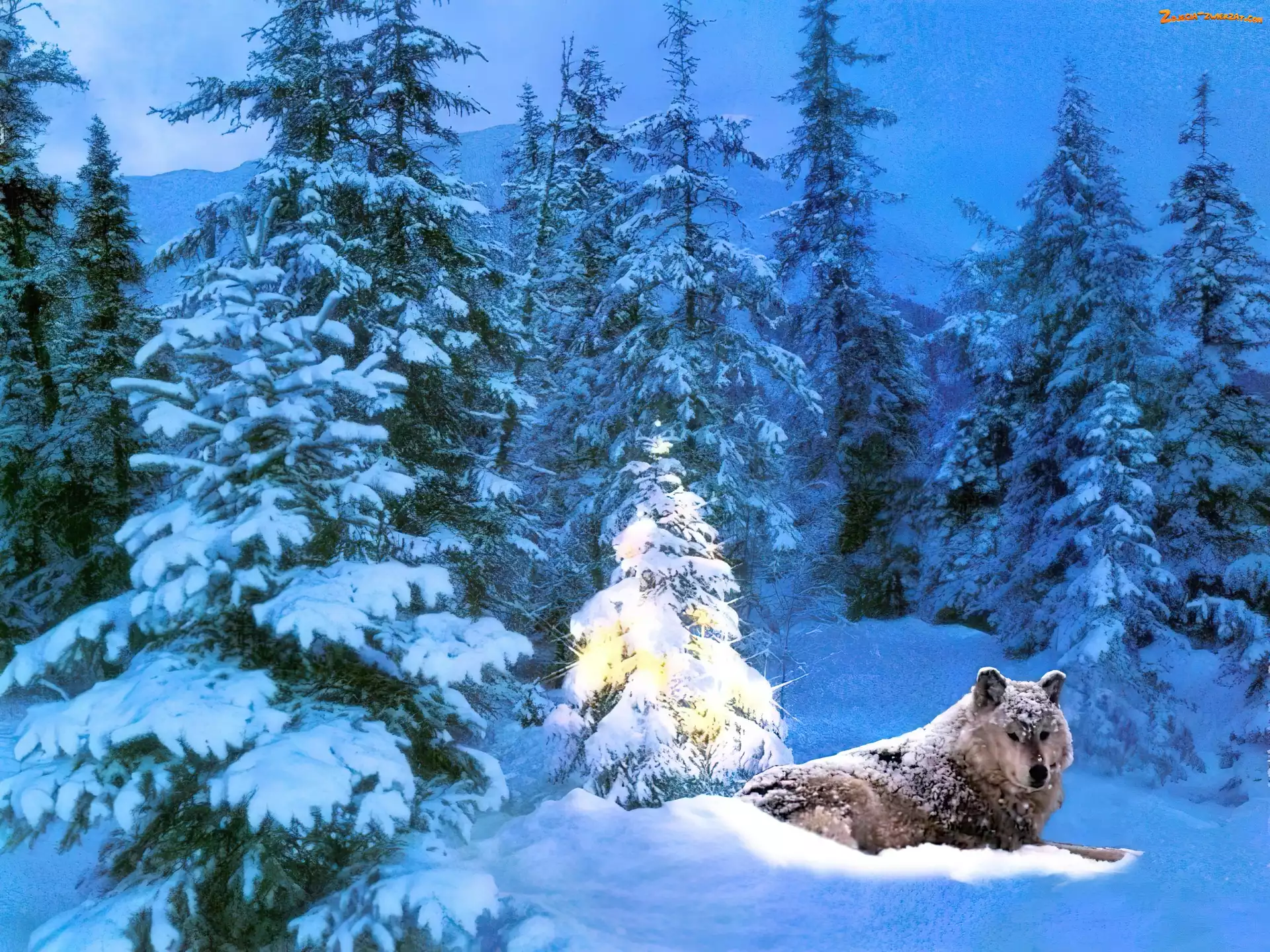 Zdjęcie: Śnieg, Wilk, Choinka
